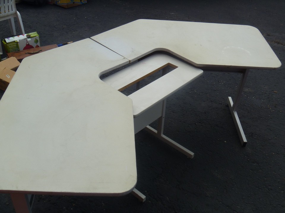Item: 90 Degree Office Desk Size: 31" H x 84" W Color: White Condition: Pre-Owned Defects: Scratches all over. Missing one foot. IF YOU FIND ANYTHING WRONG WITH THIS LISTING , PLEASE MESSAGE ME RIGHT AWAY AND I WILL FIX IT, OUR GOAL IS TO 100 PERCENT SATISFY YOU. Thank You for looking at my Store. I am a United States Army Veteran and our Store is Veteran Owned and we count on an honest transaction. We have a no hassle return Policy. It?s really simple if you don?t like it please return the item and I will issue you a refund. I have quickly learned that Customer Satisfaction is the number one Priority. My Store is open for Business and I invite everyone to take a quick look at what I have...Just click here and see all that I have View more great items