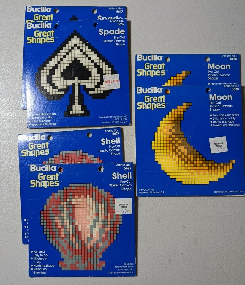 - LOT Vintage 1982 Bucilla Great Shapes Pre-Cut Plastic Canvas w/ Charts – 6
