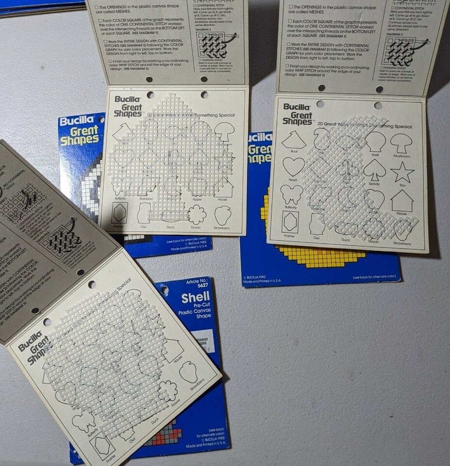 LOT Vintage 1982 Bucilla Great Shapes Pre-Cut Plastic Canvas w/ Charts ? 6.