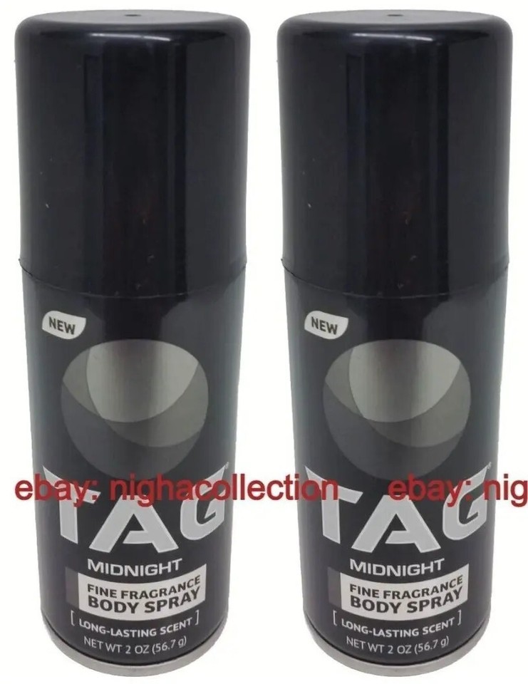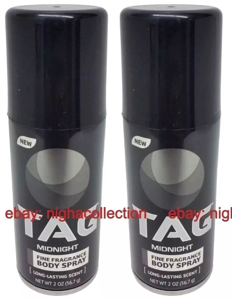 ( LOT of 2 ) TAG Men's Body Spray MIDNIGHT Fine Fragrance Long-Lasting Scent 2 oz Ea