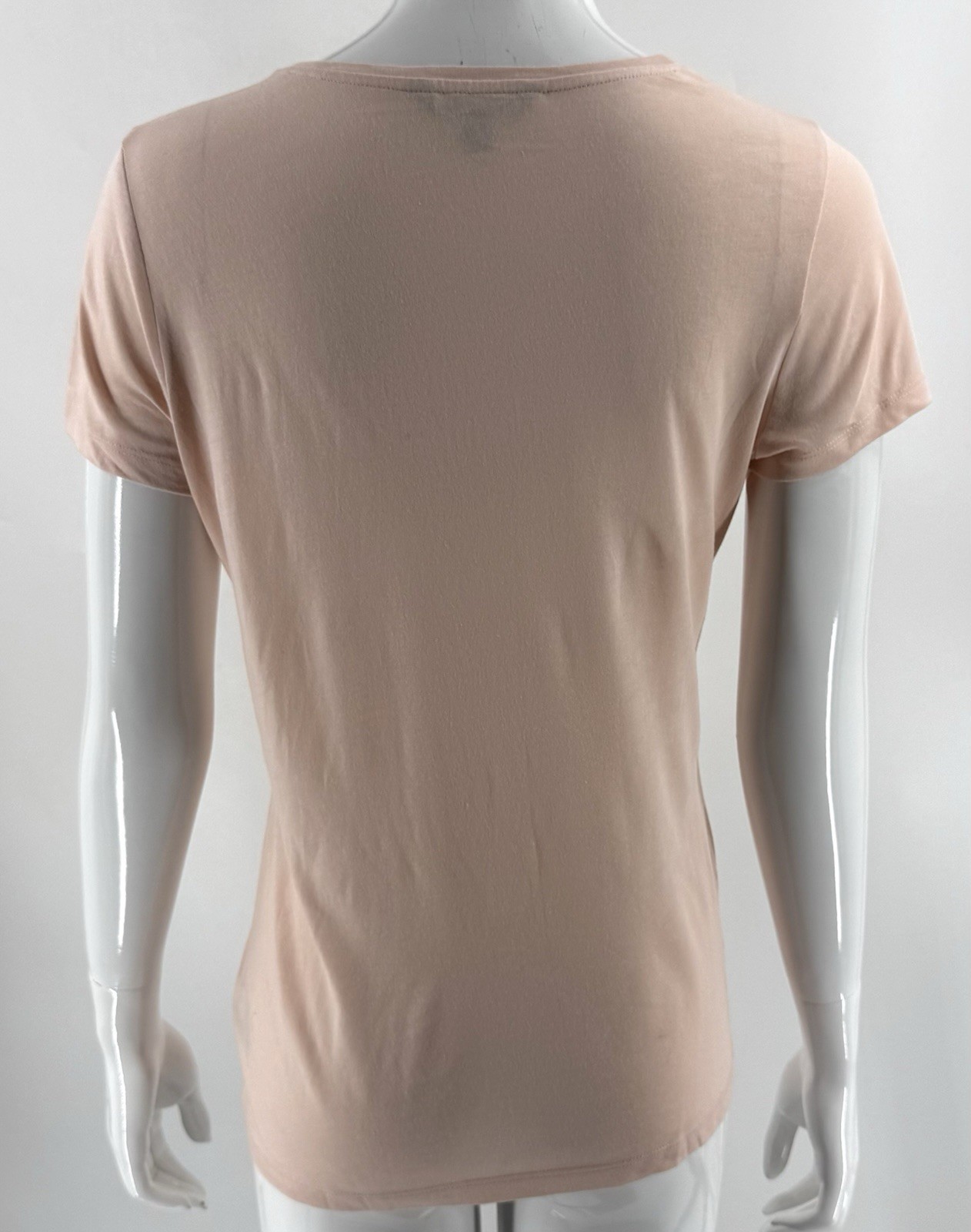 LRL Ralph Lauren Top Womens Size Medium Pale Pink Studded Logo Tee Shirt