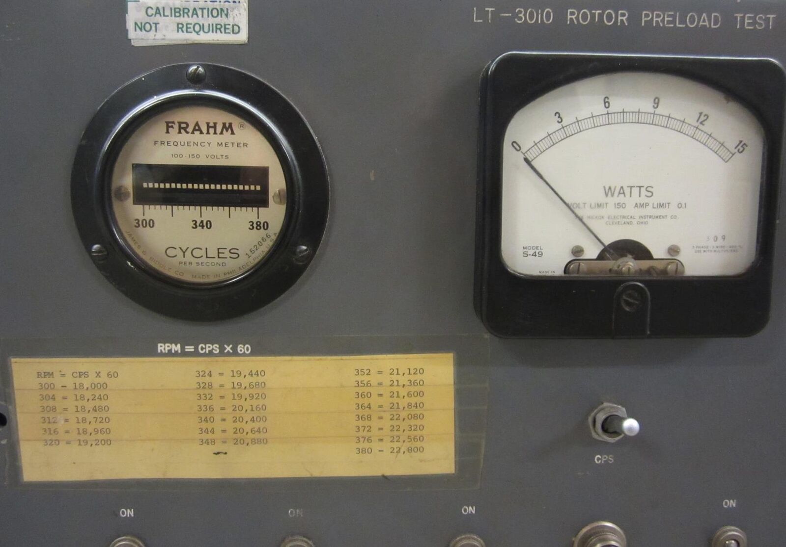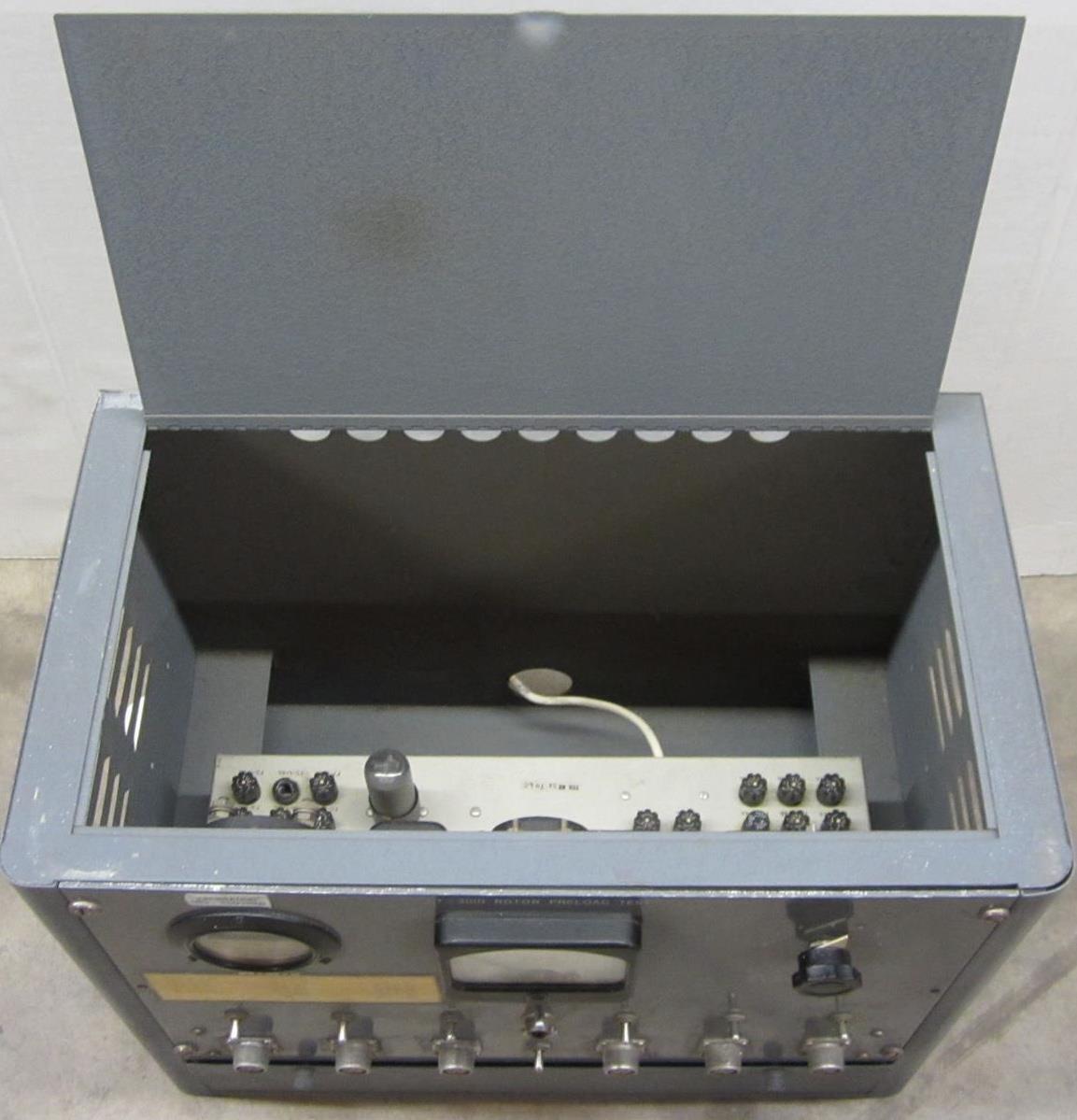 Description: Rotor preload test; Watts model S-49; Frahm frequency meter; James C Biddle Company