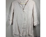 - LUNGO L'ARNO Button Up Womens Beige V-Neck Cuff Sleeve 100% Linen Size Medium