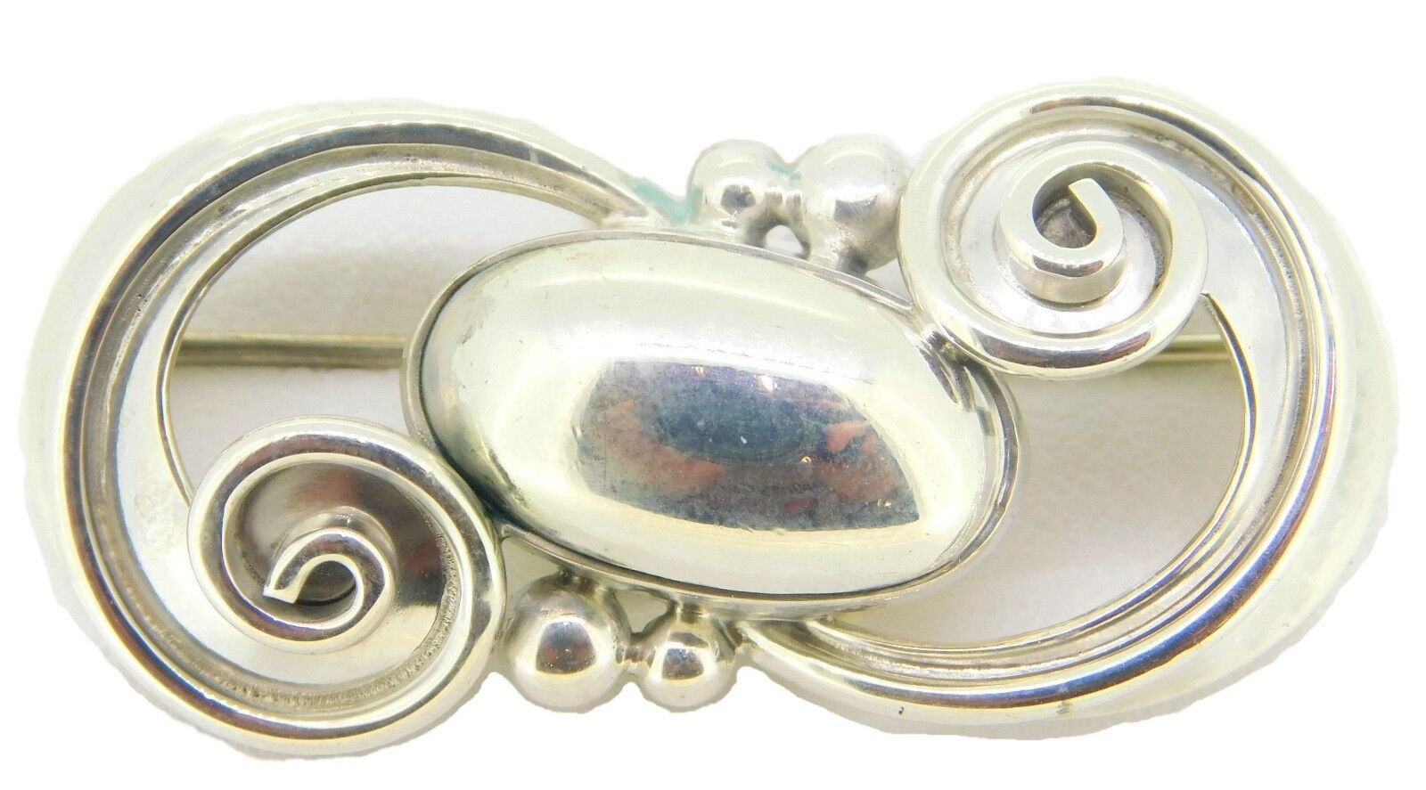 Beautiful handwrought sterling pin #200 made by International designed by Alphonse La Paglia. It measures 1 7/8" x 7/8" or 50mm x 22mm. The pin weighs 9.6 dwt., and it dates from the 1940-50s. Fabulous!