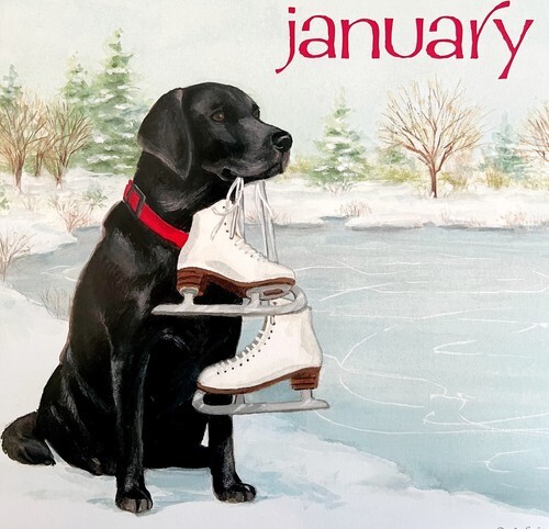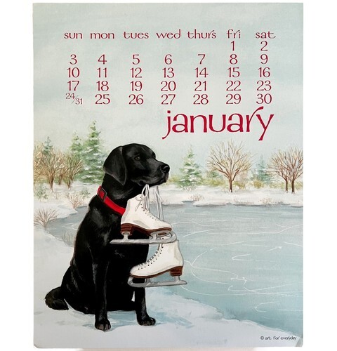 Labrador Ice Skates January Dog Days Poster Calendar 14 x 11" Art Leigh DWDDCal