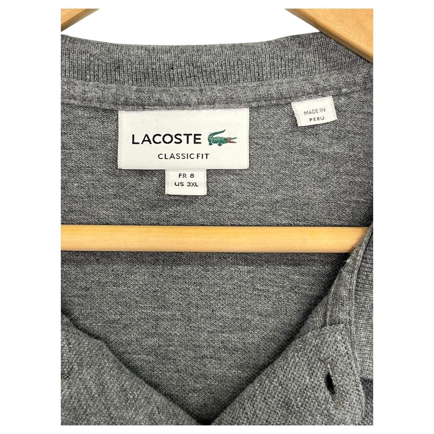 Lacoste Polo Shirt Mens 3XL Gray Classic Fit Short Sleeve Cotton Croc Logo Casual Golf, Casual, Classic, Preppy Condition: Gently worn, no visible flaws. Clean and well-maintained. Features classic crocodile alligator logo embroidered on chest Material: 100% Cotton Color: Gray Fit: Classic Fit Tag Size: FR 8, US 3XL Made in Peru Approximate flat measurements: - Chest: 26 inches - Length: 27.5 inches Style code: 3631055-48G L1264 Excellent pre-owned condition - see pics and ask questions for more details.