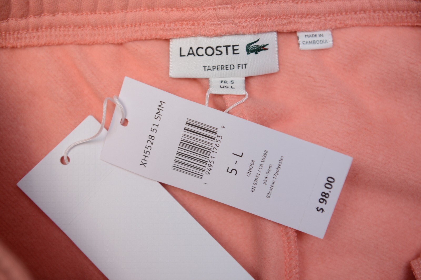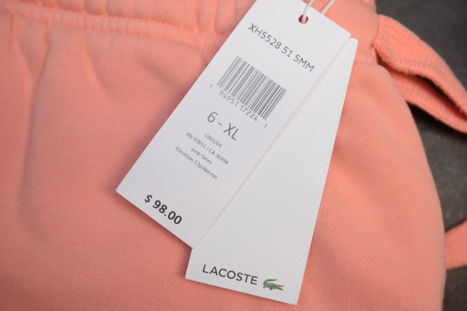 - Lacoste Sport XH5528 Men's Light Pink Fleece Cotton Joggers Sweatpants 3XL EU 8