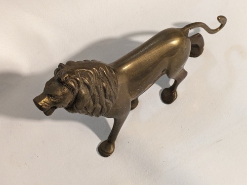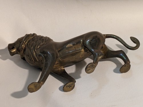Cette figure de lion rugissant en laiton vintage mesure 7,5 pouces de largeur et 3,75 pouces de hauteur. Les details complexes et l'artisanat de cette piece de collection en font un ajout unique a toute collection de metaux. La figure du lion est en laiton et son origine est inconnue. Ce n'est pas un element fait a la main ou modifie. Cette collection releve des categories de laiton, de metallures et de collectionnes.
