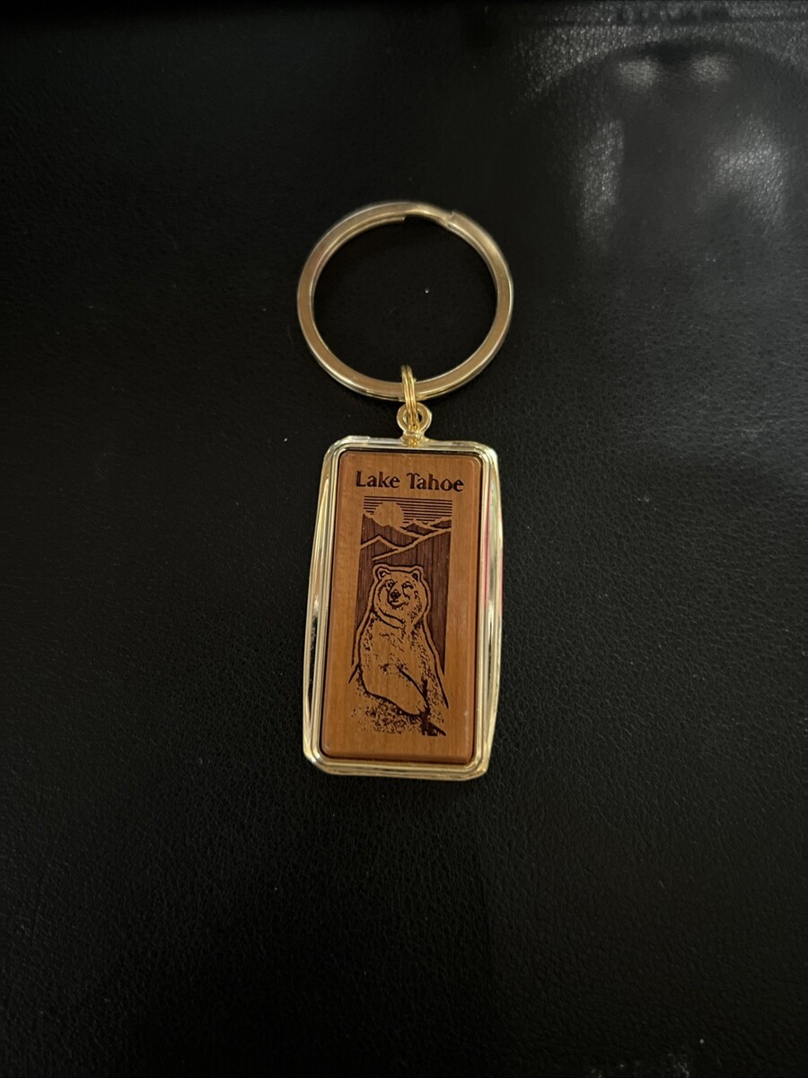 Lake Tahoe Bear Souvenir Keychain Accessory USA Wood Engraved and Metal