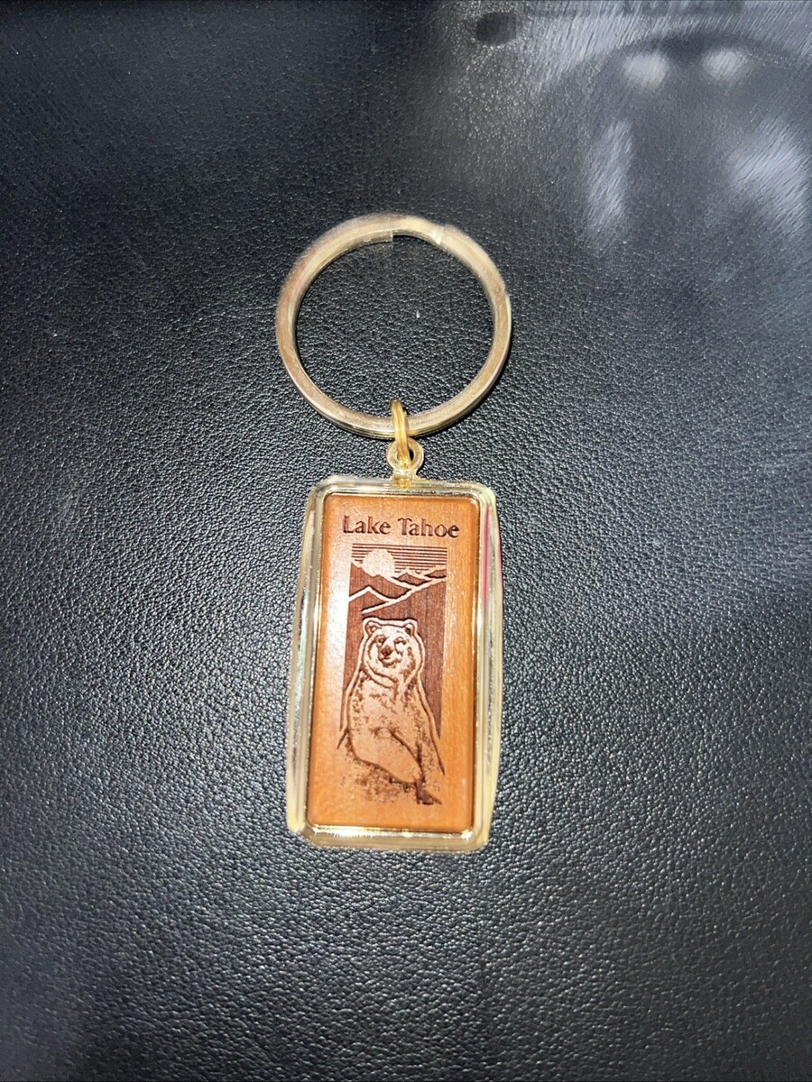 Primary image for Lake Tahoe Bear Souvenir Keychain Accessory USA Wood Engraved and Metal