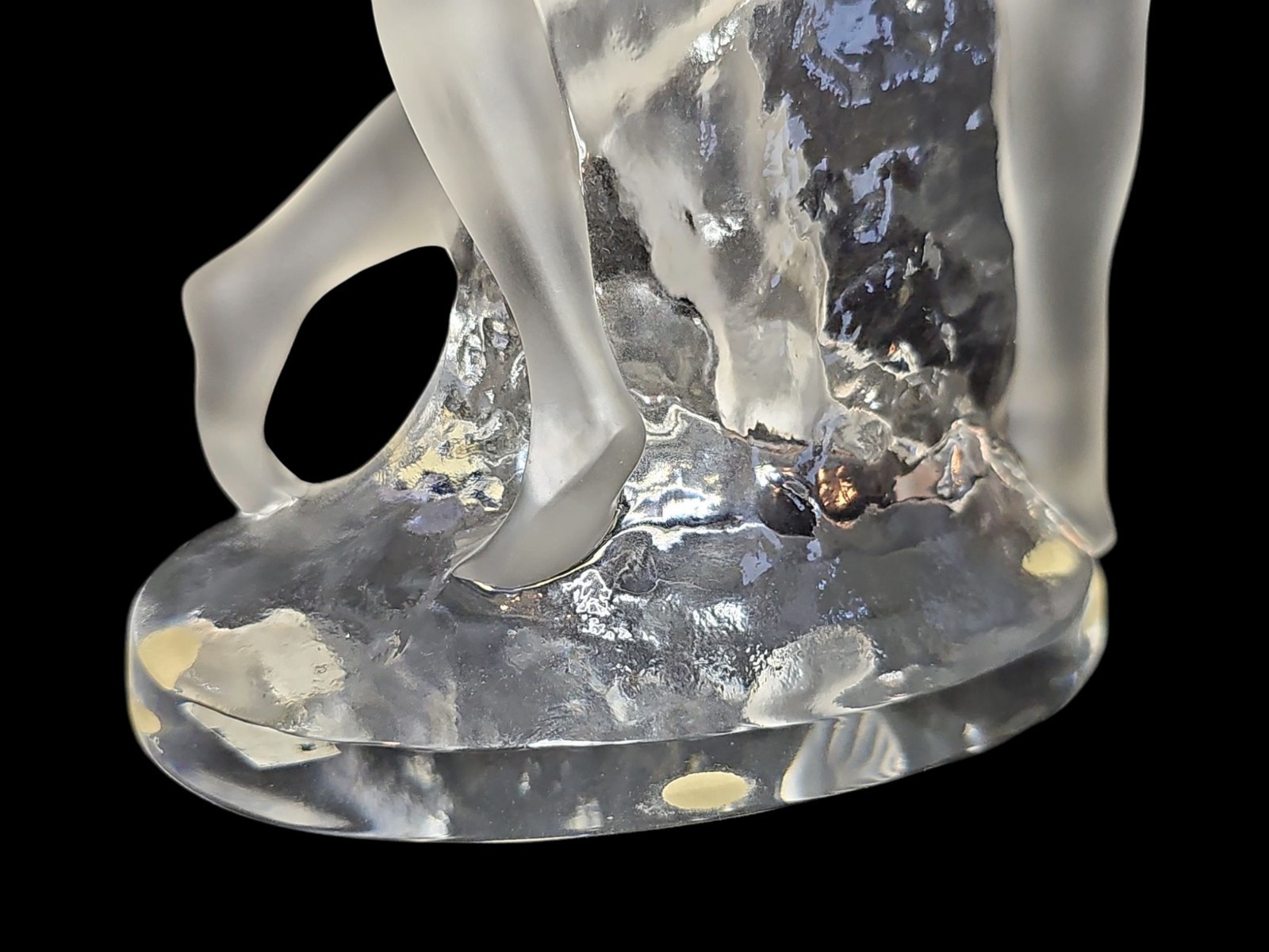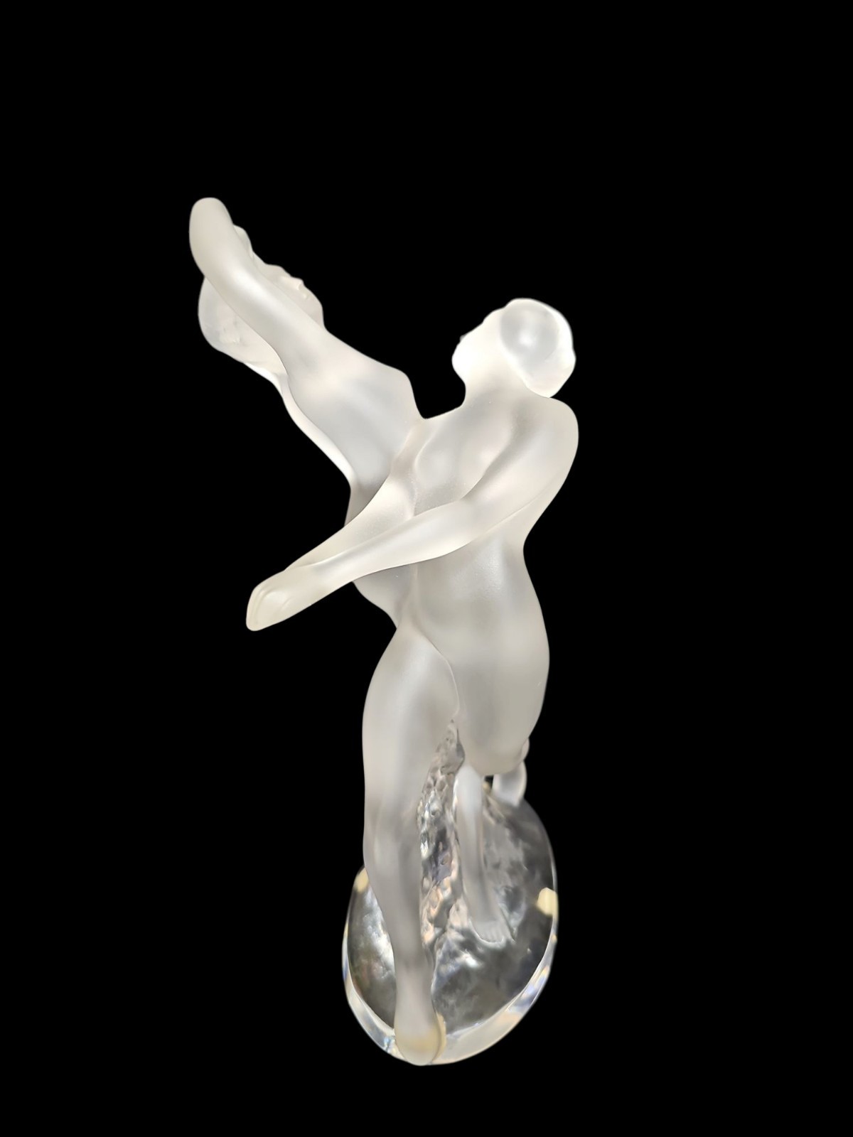 Frosted crystal nude female dancers in a dynamic, Art Deco-inspired pose
