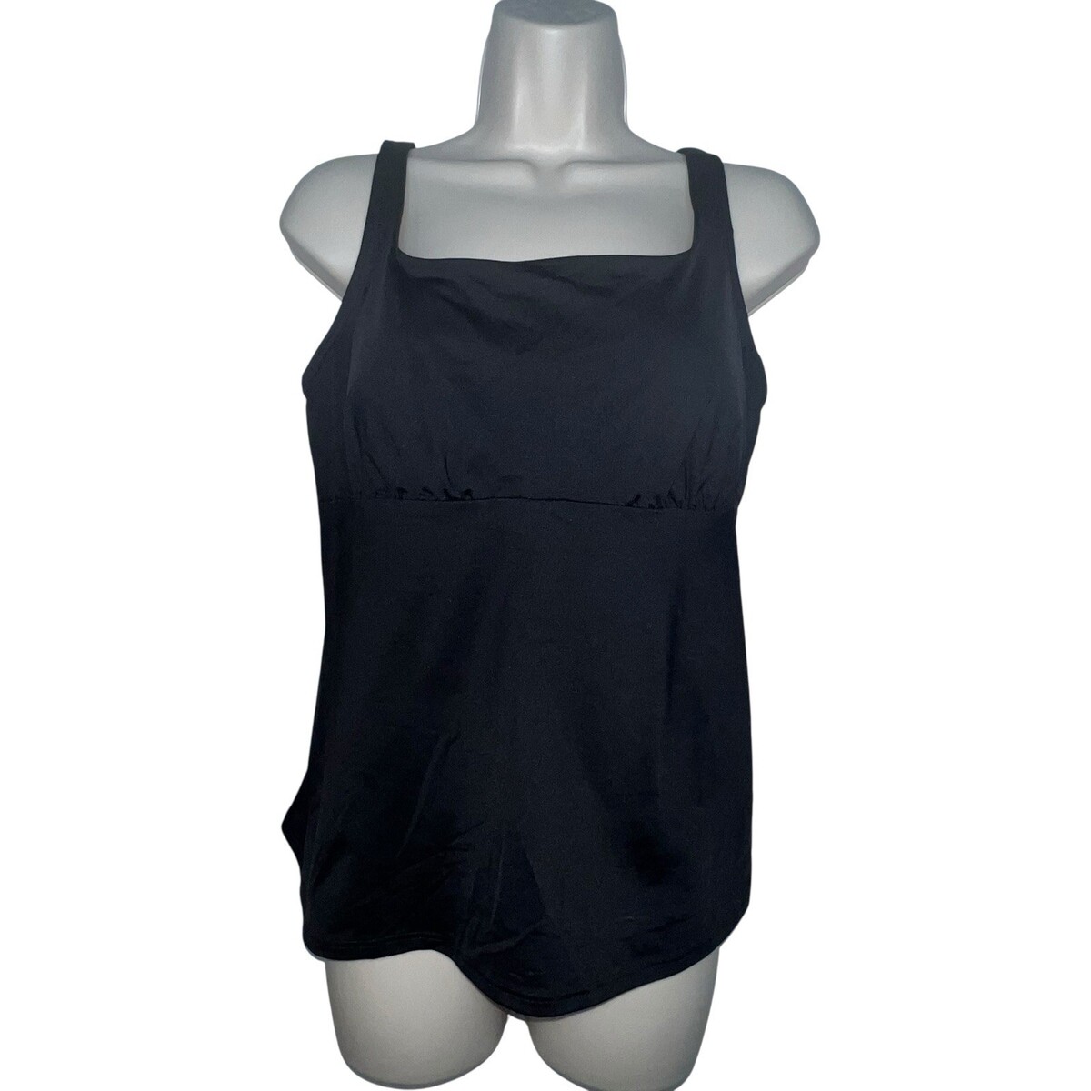 Lands End Black Tummy Control Square Neck Tankini SWIM TOP Size 10 DDD 522667