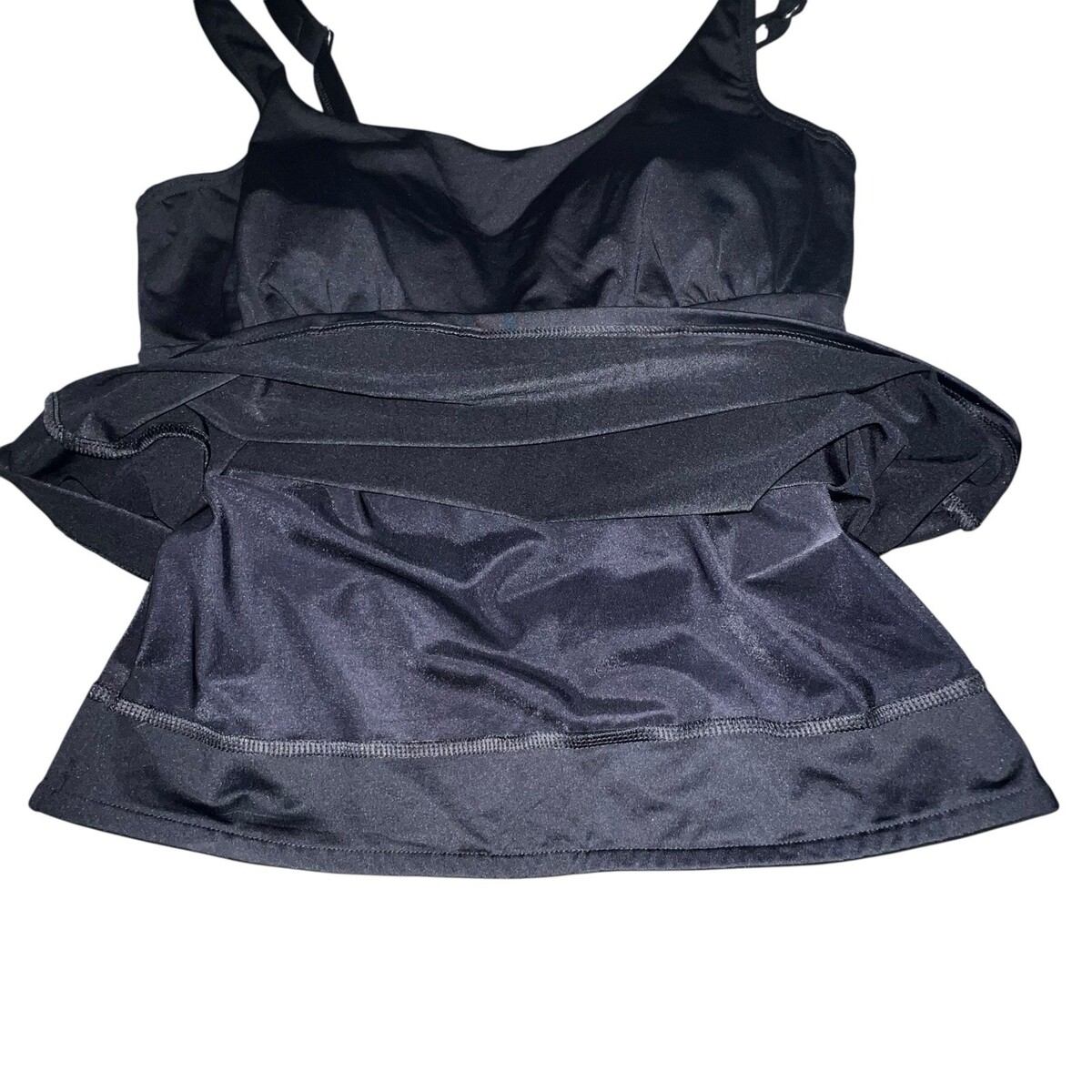 Primary image for Lands End Black Tummy Control Square Neck Tankini SWIM TOP Size 10 DDD 522667