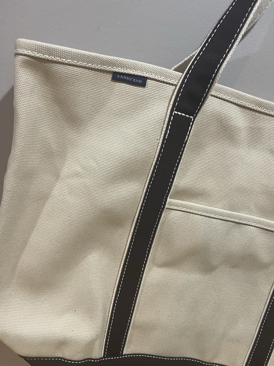 - Lands’ End Extra Large Canvas Tote Boat Bag Brown/Cognac 33x38” Y2K