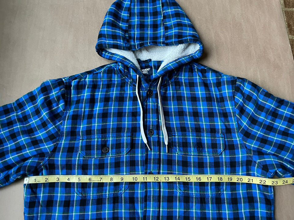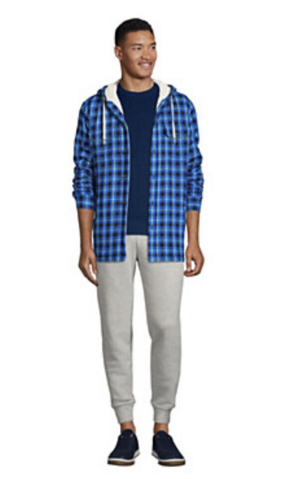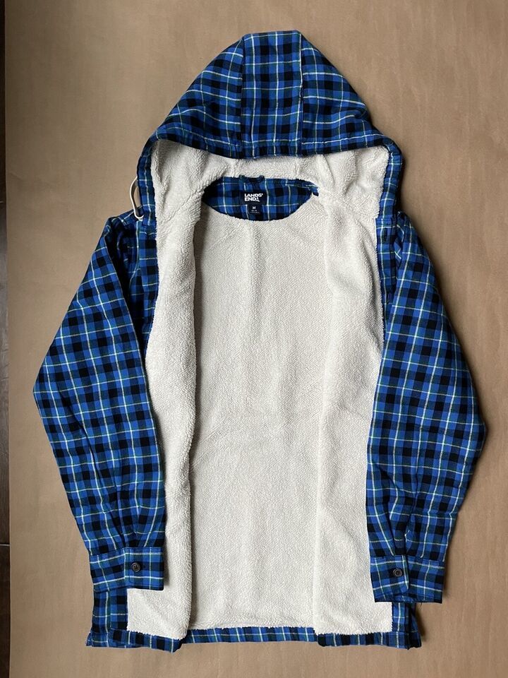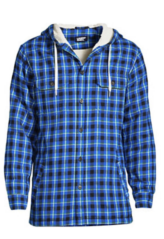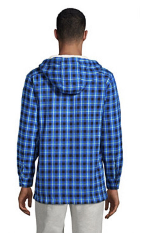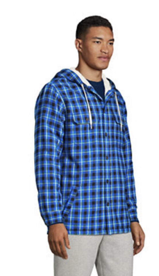- LANDS END Flannel Sherpa Lined Hooded SHIRT JACKET Size: LARGE New SHIP FREE