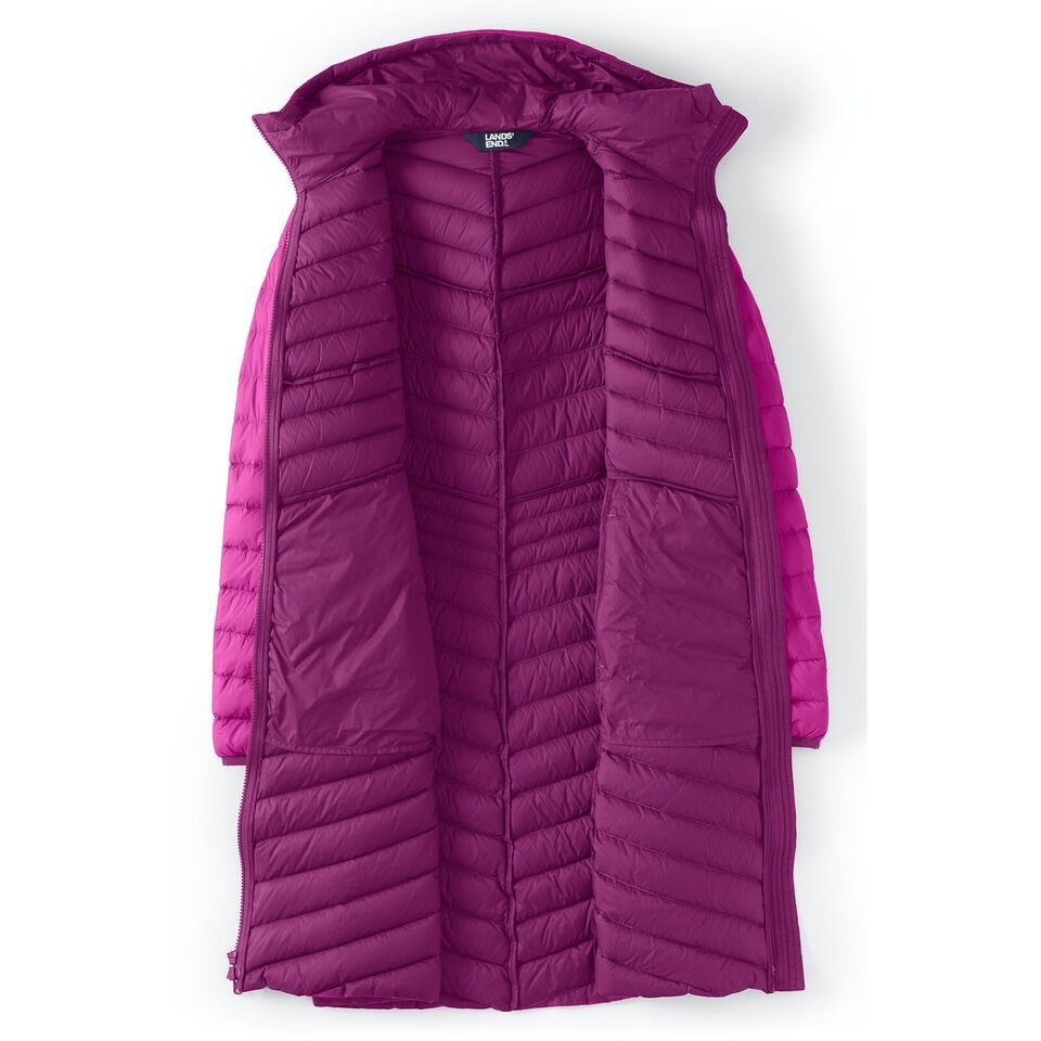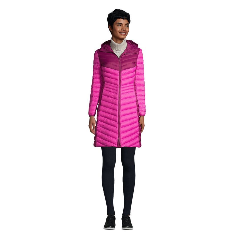 This ultralight packable coat spans the seasons. Credit the 800 fill power down for the lightweight, bulk-free warmth. Now add flattering quilt lines that make this coat a stylish accent and a water resistant finish that makes sprinkles bead up and roll off. It even packs into its own pocket, so it?s easy to bring everywhere.
