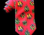 Primary image for Lands End Tie Necktie 100% Silk Red Christmas Wreath Mistletoe  3.75Wx63.75"L