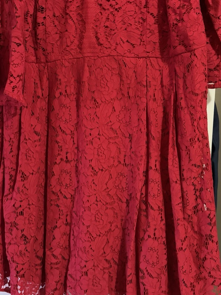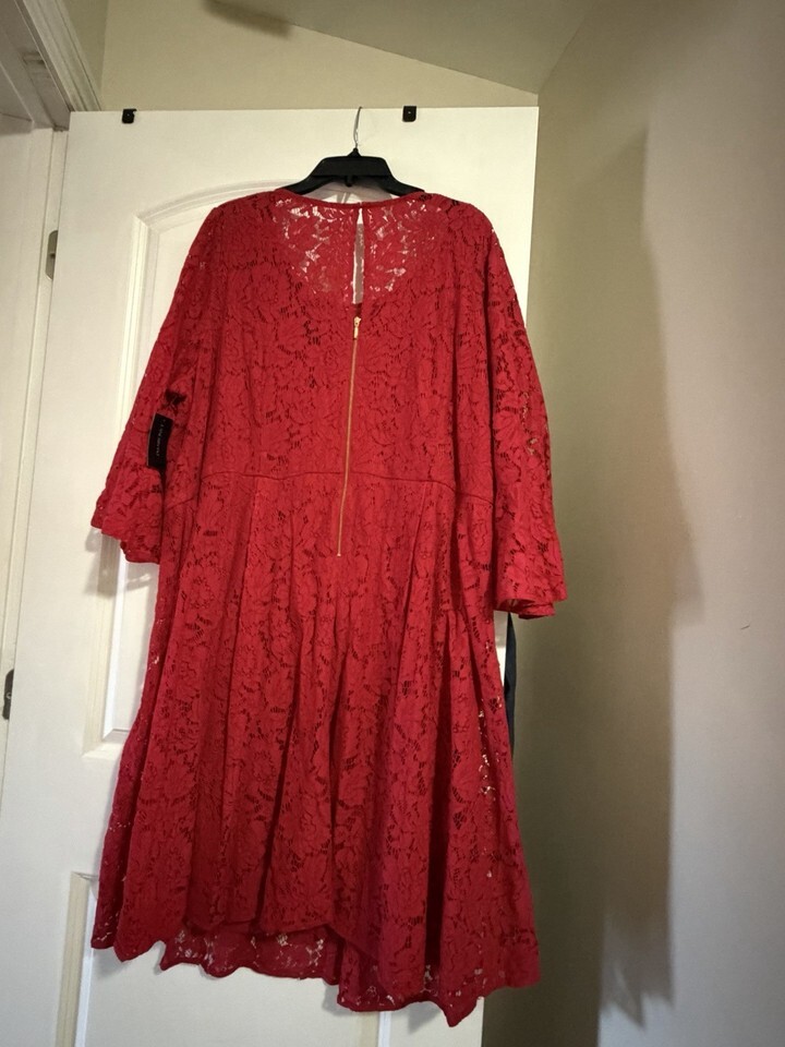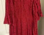 - Lane Bryant Women’s Dress Sz 28 Red Lace Floral Sip Back Bell Sleeves NWT