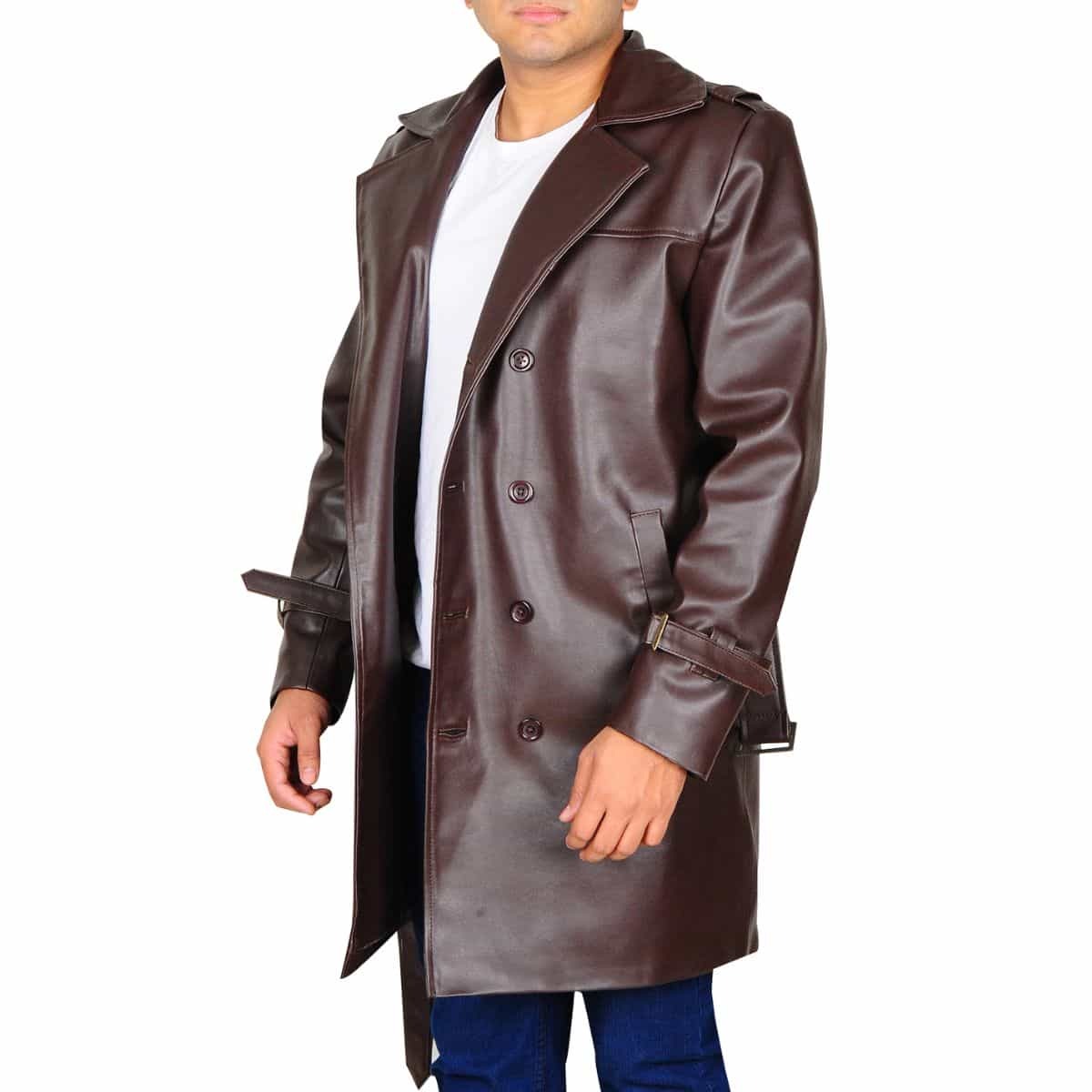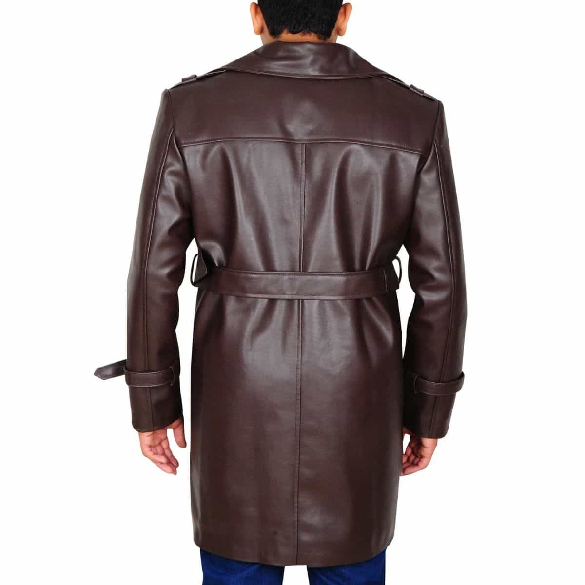 - Lapel Collar Trench Leather Jacket