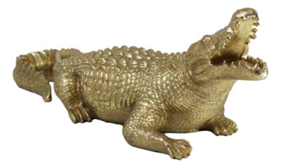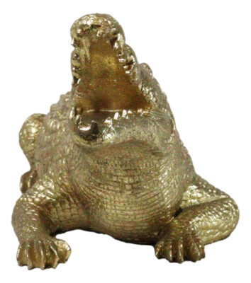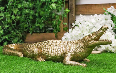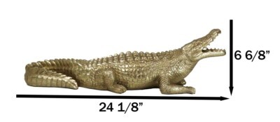 - Large 2 Feet Gold Patina Crocodile Baring Jaws and Razor Teeth Garden Statue