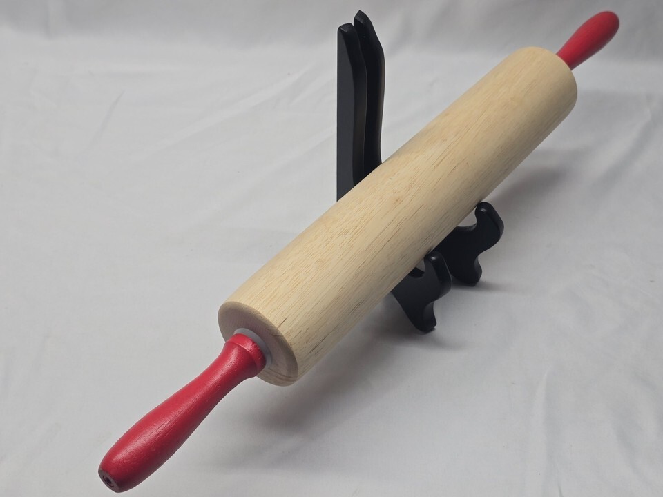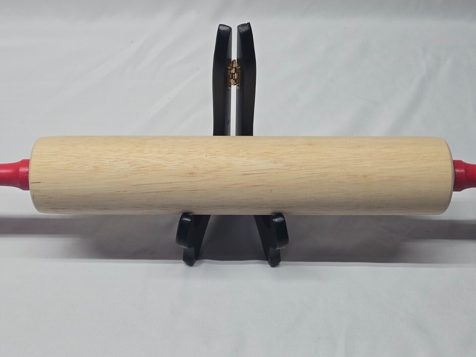 - Large 20” Hickory Or Maple Wood Rolling Pin With Red Handles Likely NOT Vintage