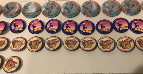 Large Lot Of 37 Volunteers Pins / Buttons Touching Lives Lifting Spirits Magic. Condition is "Used", but like new . Shipped with USPS First Class.