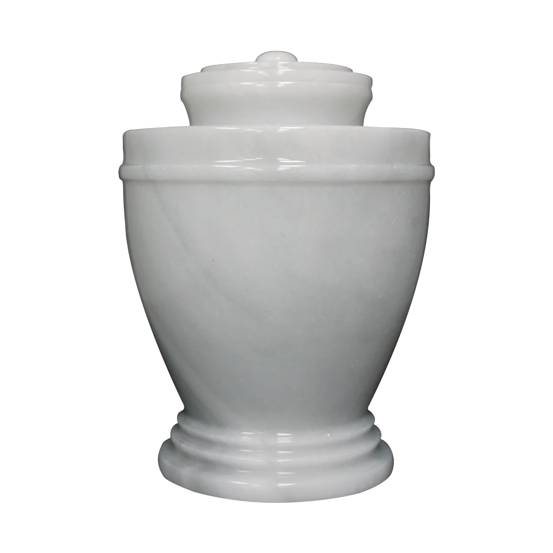 The Union Trophy Antique White Urn, in soft creamy marble with delicate natural variations, offers a serene and elegant tribute. Crafted from a single block of stone, its seamless design ensures lasting strength, creating a timeless vessel to honor a cherished life.