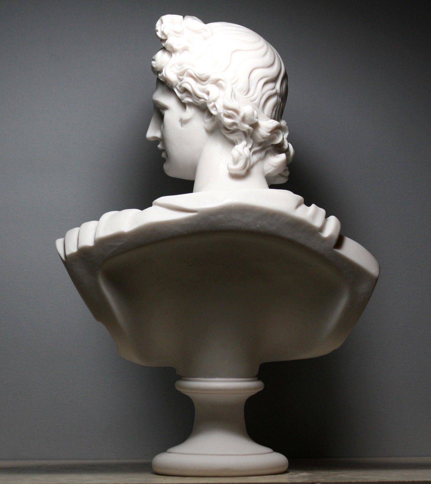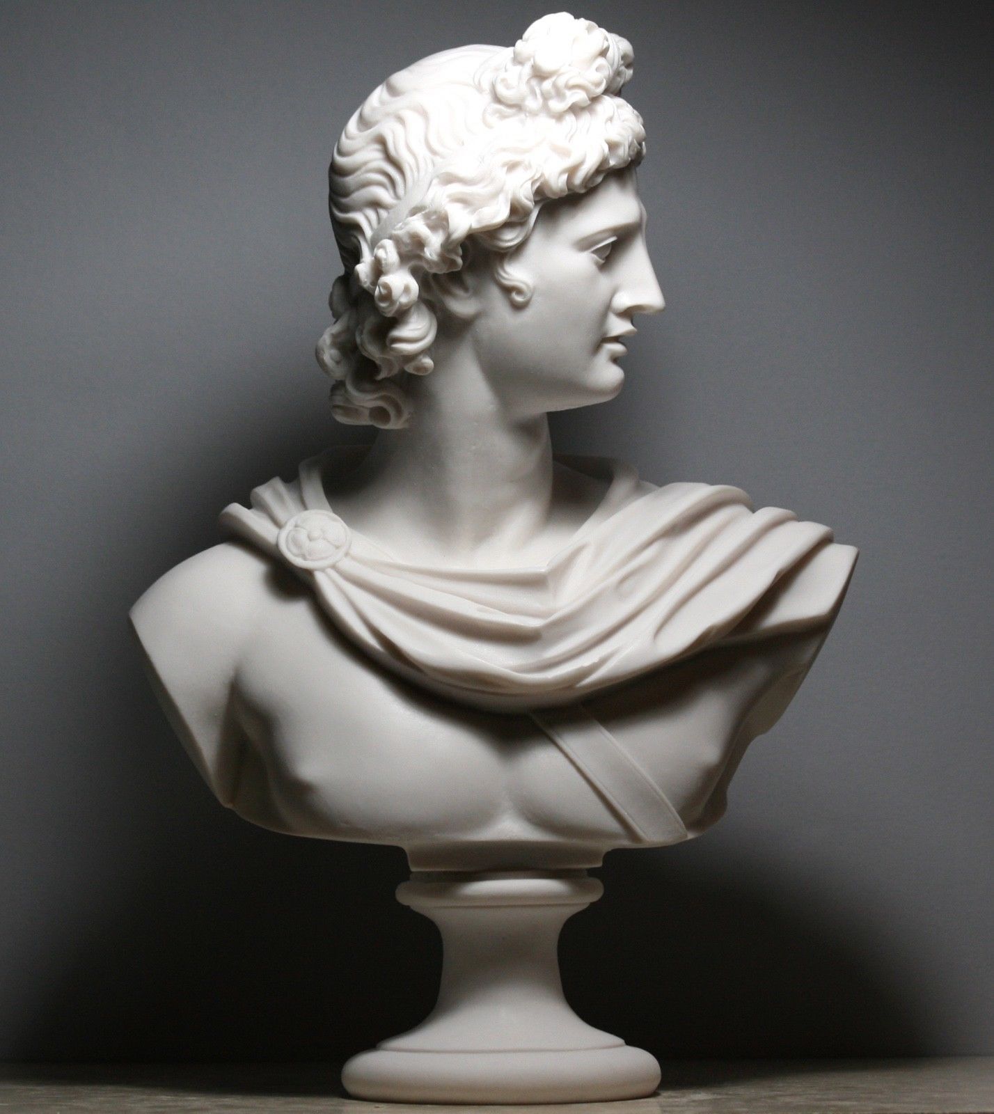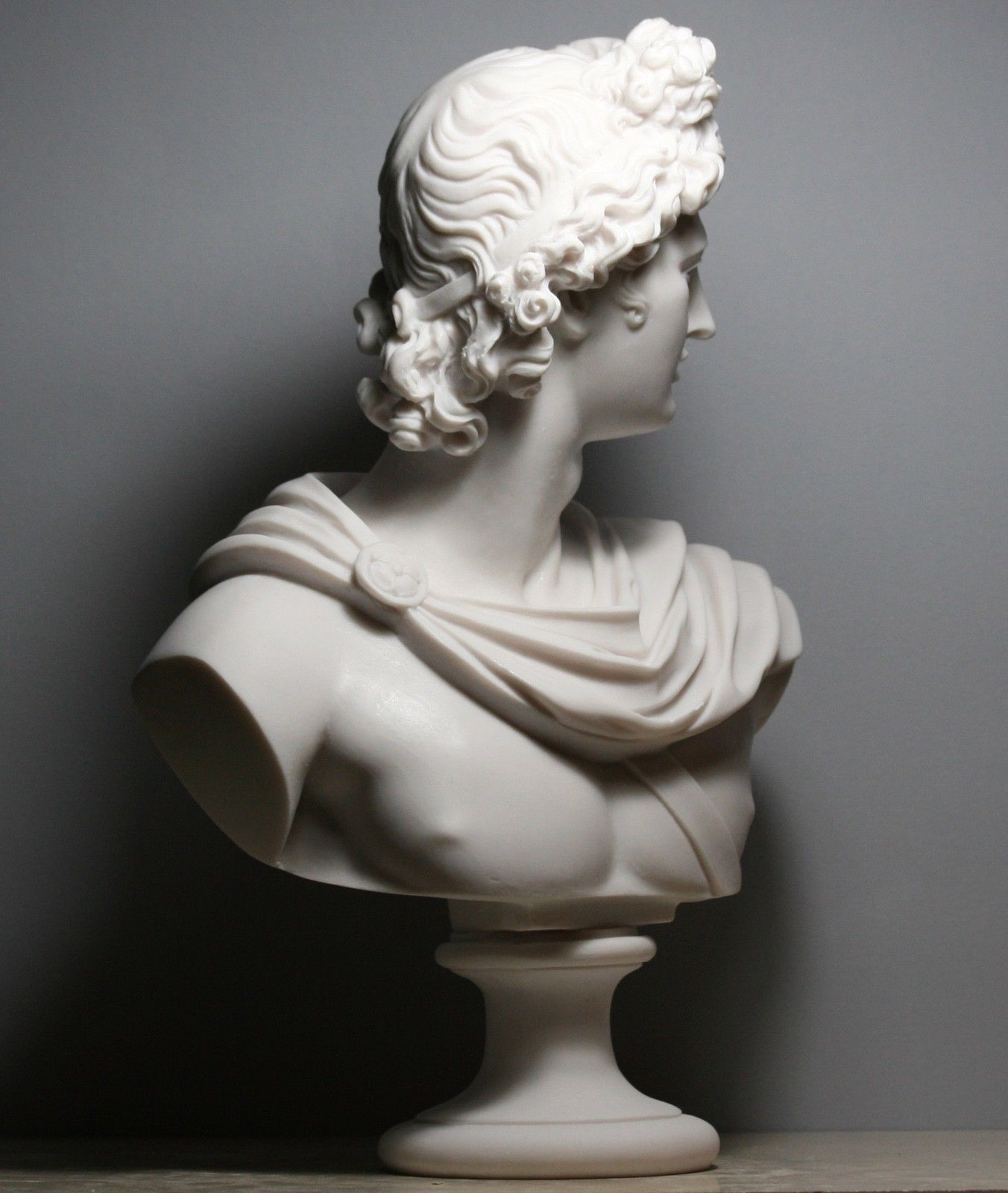 - Large Apollo Greek Roman God Bust Head Statue Cast Marble Sculpture 53 cm