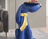 Elevate your interior with this whimsical large green dog tray sculpture?a functional art piece and side table in one. Standing 27.6 inches tall, this Interoknack creation is expertly crafted from durable Nordic-style resin and finished in a glossy, modern color palette with a black accent scarf. The flat 11.8-inch diameter tray surface on its head offers reliable, easy-access storage for drinks, remotes, snacks, or decor, while the playful dog posture brings charm and personality to any setting. Ideal for positioning next to couches, hallways, or television stands, this statement table doubles as a delightful conversation starter and useful surface. Its sturdy, easy-to-clean build suits living rooms, offices, hotel lobbies, or children's play-rooms. The piece arrives fully finished with no installation needed?simply place it in your space and enjoy the artistic functionality it provides. Add this creative accent to modern and playful spaces for an instant style upgrade that combines practicality with whimsical design.