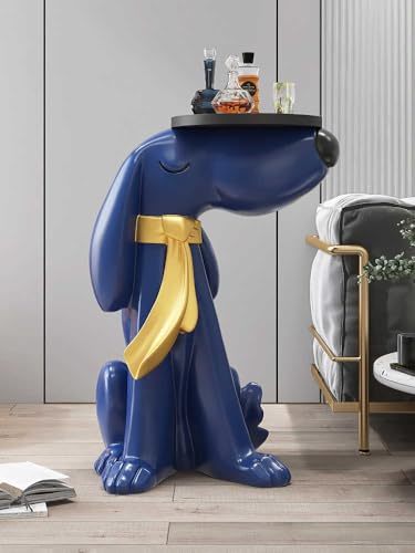 Product description: Elevate your interior with this whimsical large green dog tray sculpture?a functional art piece and side table in one. Standing 27.6 inches tall, this Interoknack creation is expertly crafted from durable Nordic-style resin and finished in a glossy, modern color palette with a black accent scarf. The flat 11.8-inch diameter tray surface on its head offers reliable, easy-access storage for drinks, remotes, snacks, or decor, while the playful dog posture brings charm and personality to any setting. Ideal for positioning next to couches, hallways, or television stands, this statement table doubles as a delightful conversation starter and useful surface. Its sturdy, easy-to-clean build suits living rooms, offices, hotel lobbies, or children's play-rooms. The piece arrives fully finished with no installation needed?simply place it in your space and enjoy the artistic functionality it provides. Add this creative accent to modern and playful spaces for an instant style upgrade that combines practicality with whimsical design.