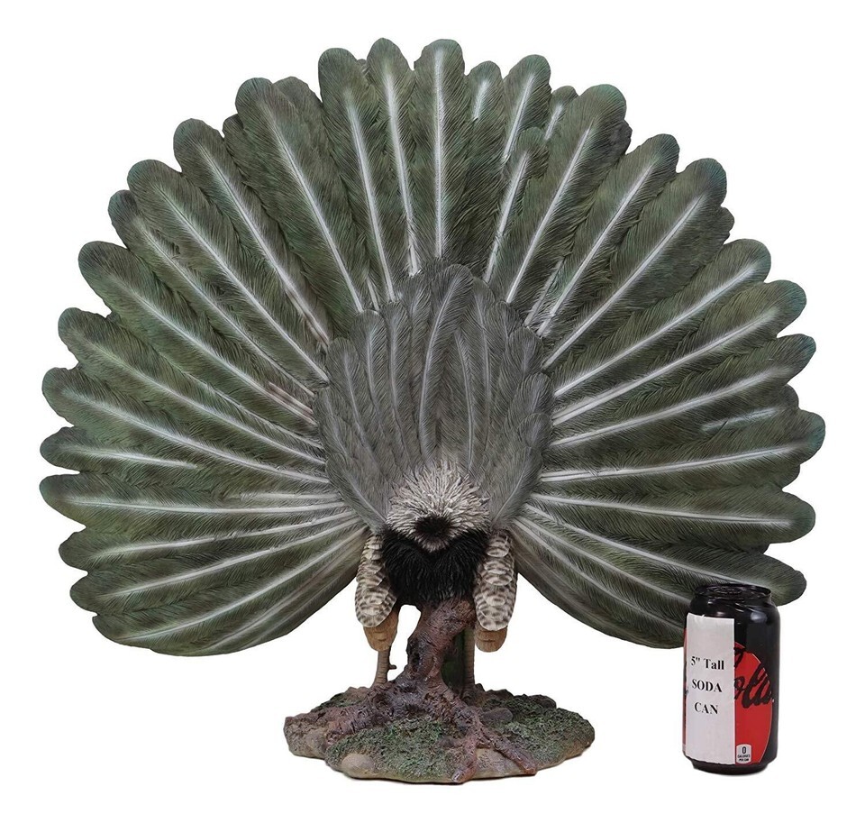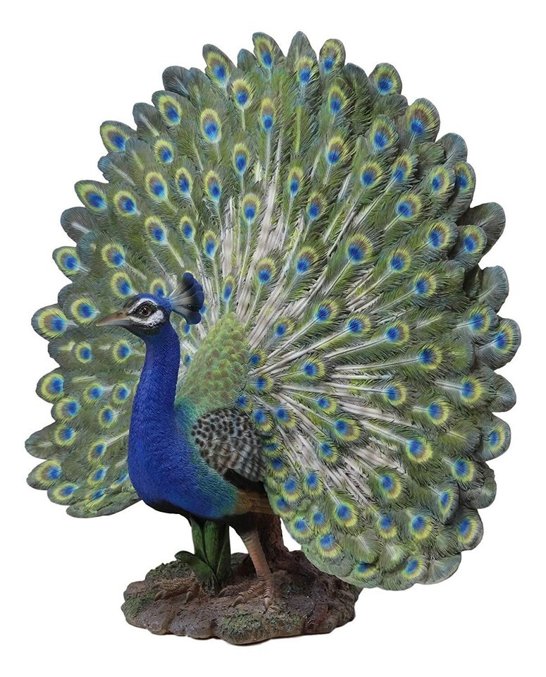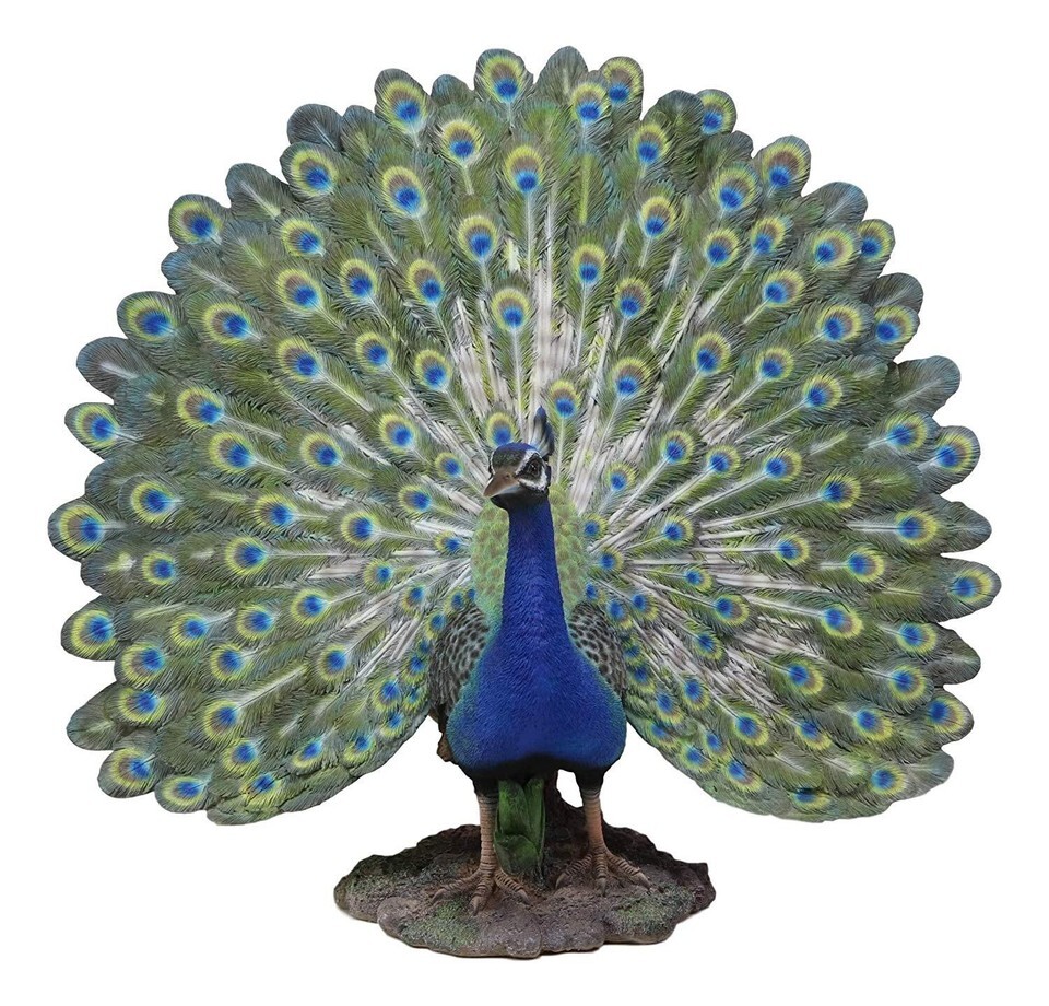 ? The Magnificent Peacock Fanning His Iridescent Train Quill Plumage Statue is made of composite resin hand painted and polished individually. Color Tone may vary from pictures.