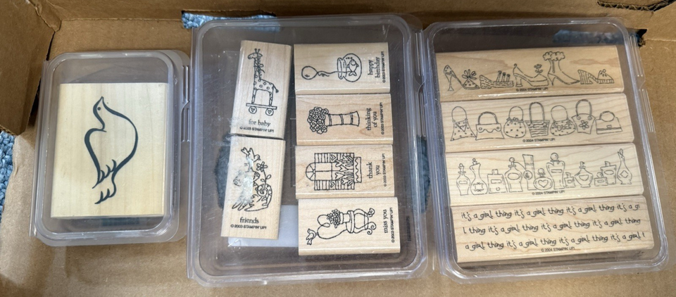 - LARGE LOT WOODEN BLOCK RUBBER STAMPS SCRAPBOOKING STAMP'N UP