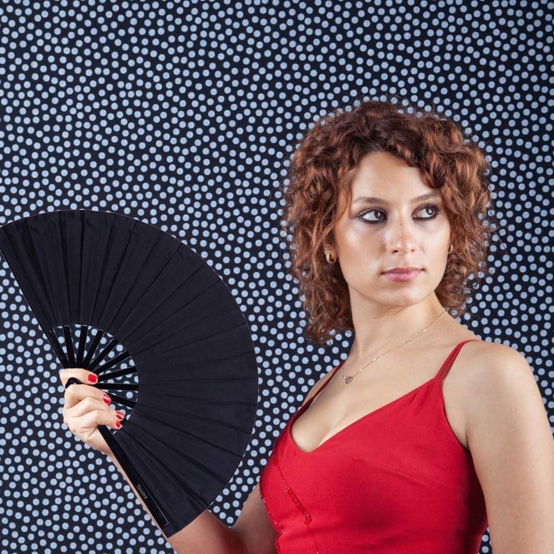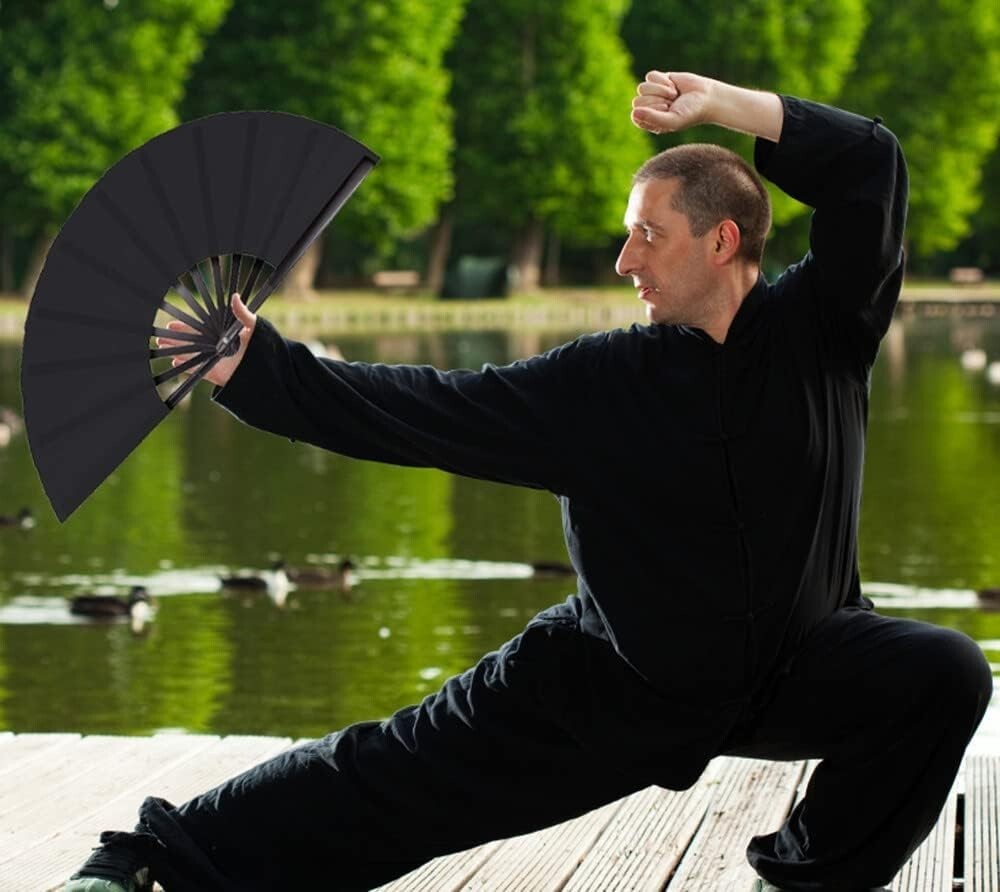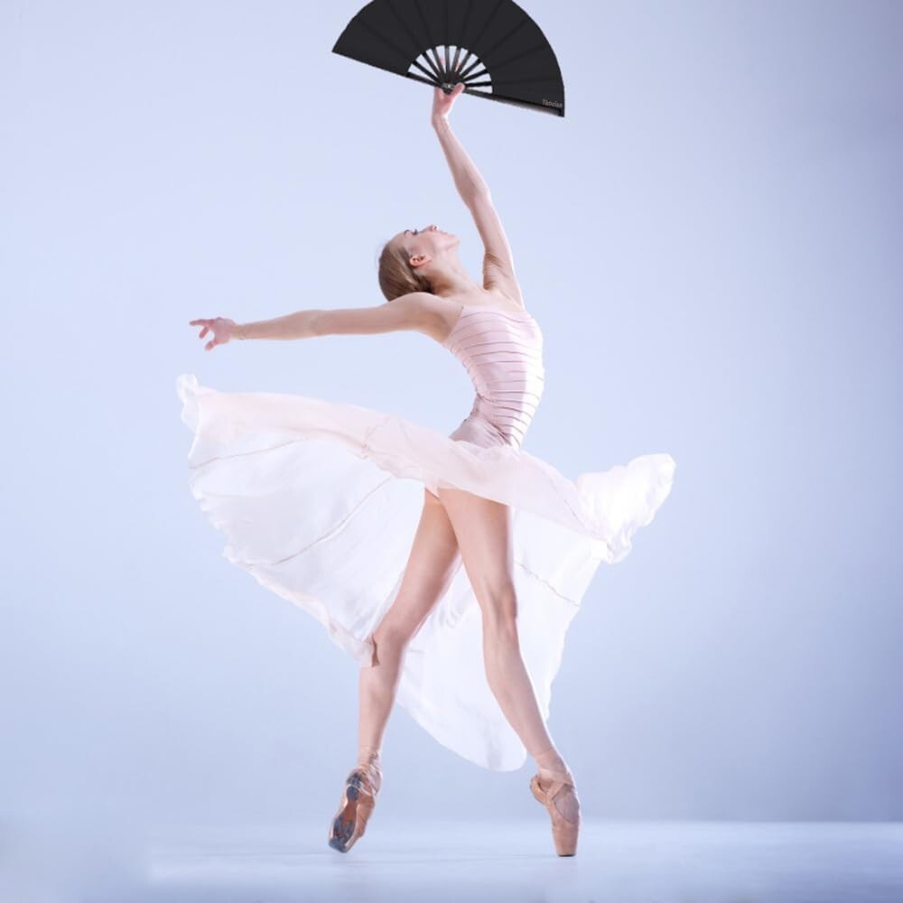 Stay cool and stylish with our set of two large black folding fans, crafted from durable plastic and lightweight nylon cloth. Each fan measures approximately 33 x 63.5 cm (13 x 25 inches), making them easy to hold or carry in your bag. Effortlessly open the fans with a gentle flick, creating a satisfying loud sound at high speed, perfect for making a statement at parties, festivals, or performances. Ideal for dance, Halloween, Christmas, or as a thoughtful gift, these foldable fans are versatile and practical for everyday or special occasions. Enhance your events or personal collection with this elegant, functional accessory.