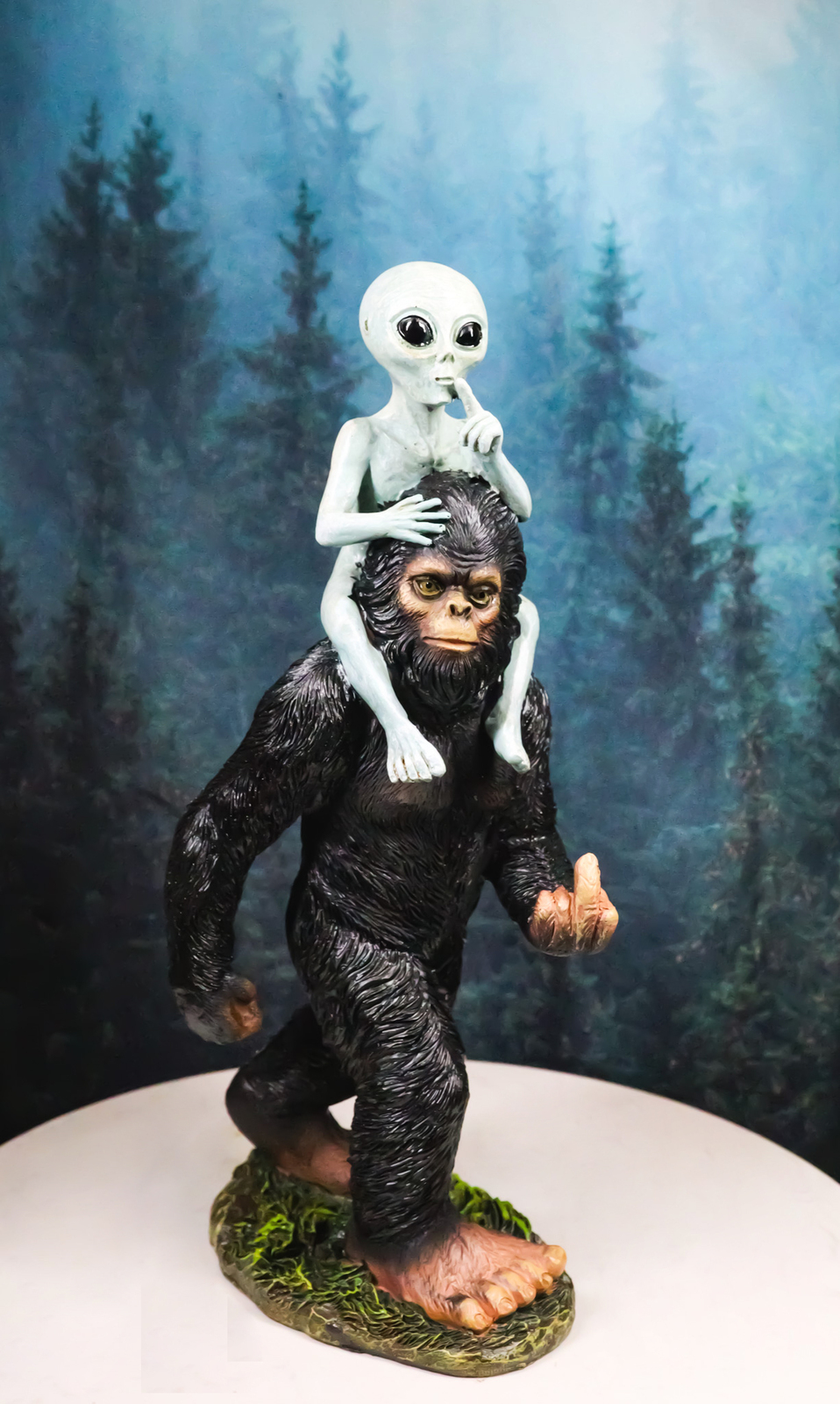 - Large Sasquatch Bigfoot Flipping Off With Roswell Alien On Shoulders Figurine