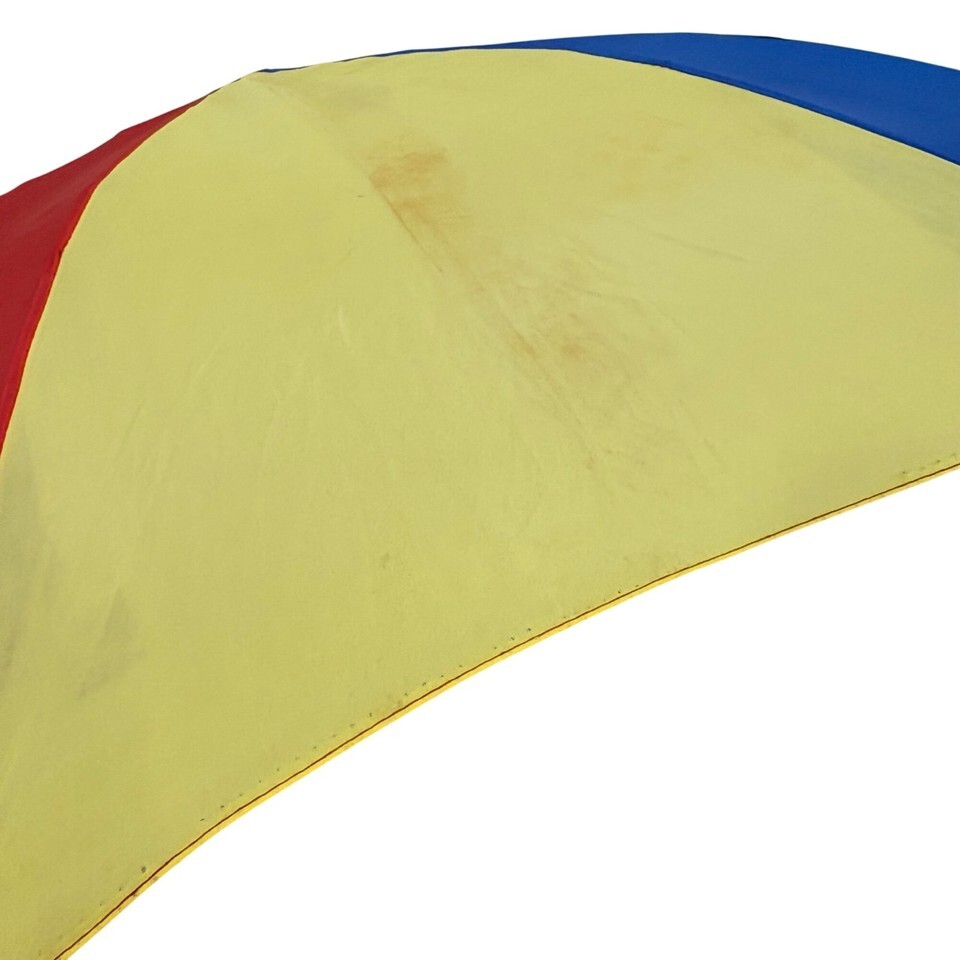 This vibrant umbrella features a classic rainbow design with a sturdy wooden handle, offering reliable protection from the elements while adding a splash of color to any rainy day. Its vintage appeal and durable construction make it a timeless accessory for those who appreciate both style and functionality. ? Rainbow pattern ? Wooden handle ? Metal ribs ? Automatic open/close ? Large canopy size Rust on the metal shaft adds character to this vintage piece. Approx 36" Long Features: ? Rain ? rainbow Condition: Pre-Owned Good Rust on metal shaft