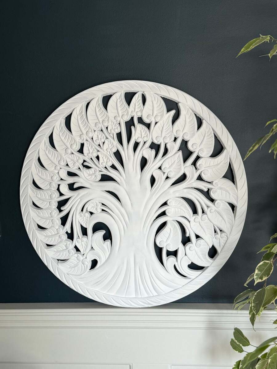 - Large White Carved Tree Decor
