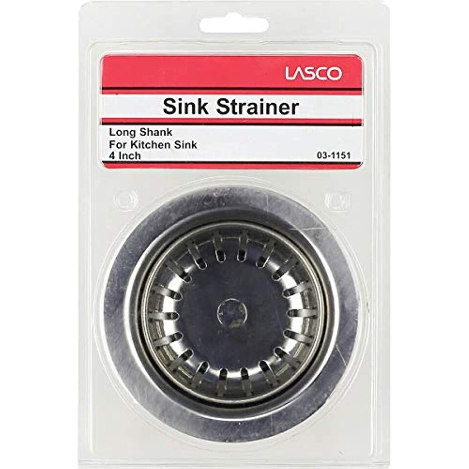 Features. Stainless Steel Kitchen Basket Sink Strainer. With Long Shank For Deep Mount. Includes Locknut Washers. Carded.. Size - 3-12 in. O.D.. Dimension - 3 x 5.75 x 8.5 in.. Item Weight - 0.82 lbs.
