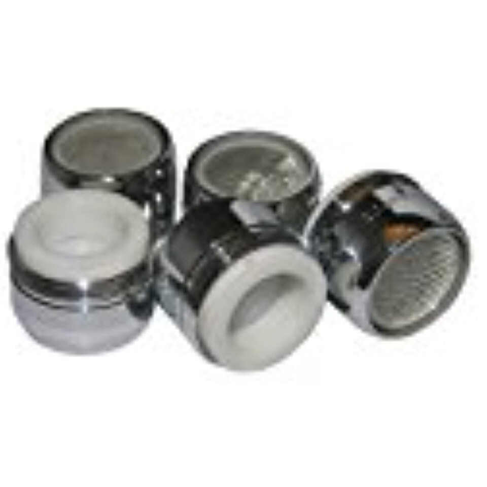 5 pack, 55/64 inch x 27 female x 15/16 inch male, dual thread, chrome aerator, California flow rate compliant for lavatory faucets, carded.