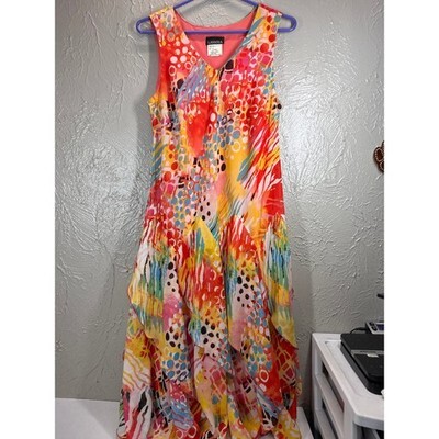 - Lasania Womens Made in Canada Hankerchief Sleeveless Dress Watercolors Size 10