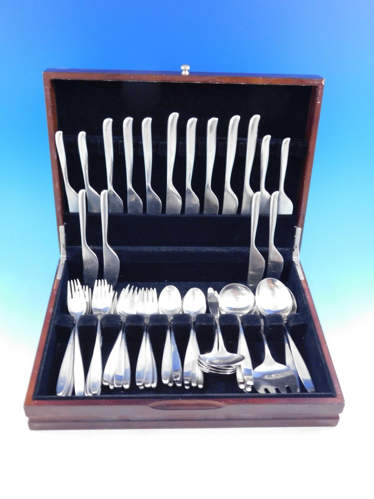 Modern Lauffer Design 2 Stainless Steel Flatware set, 51 pieces. This set includes:
