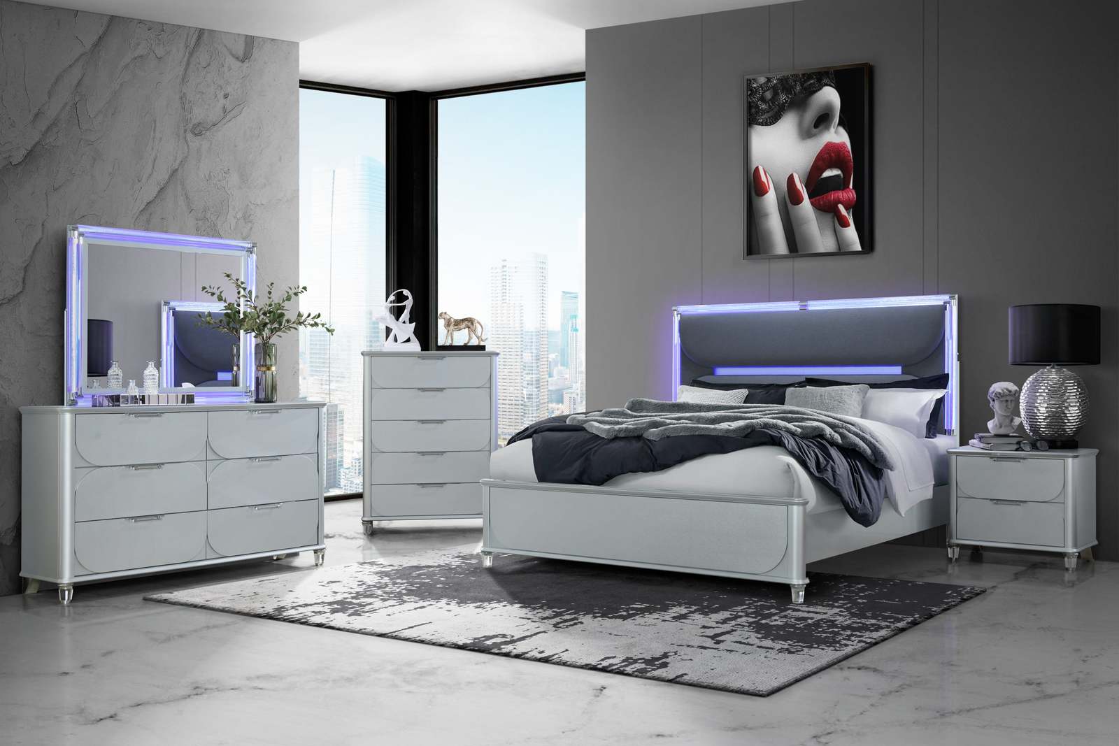 Laura Silver Nightstand: Modern & Chic Bedroom