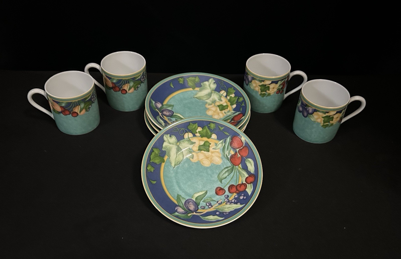 One cup has a small chip on the outside rim. Please see all pictures for details. No other chips or cracks.