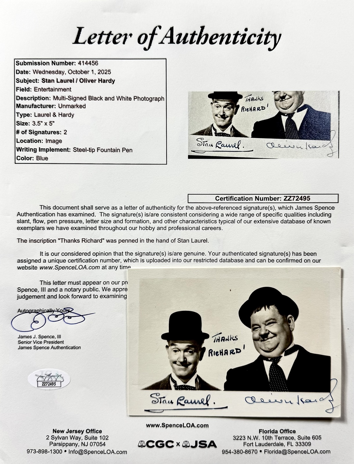 - LAUREL and HARDY Signed Autograph 3 1/2" x 5" PHOTO Stan Laurel Oliver Hardy JSA