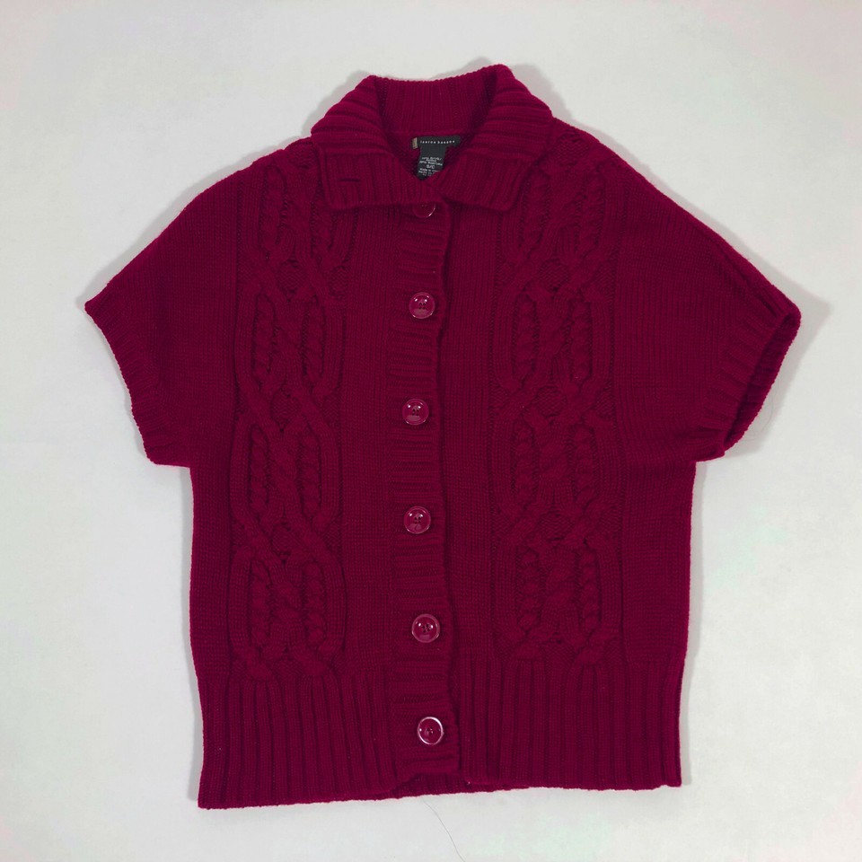 short sleeve, burgundy, Cardigan Sweater |