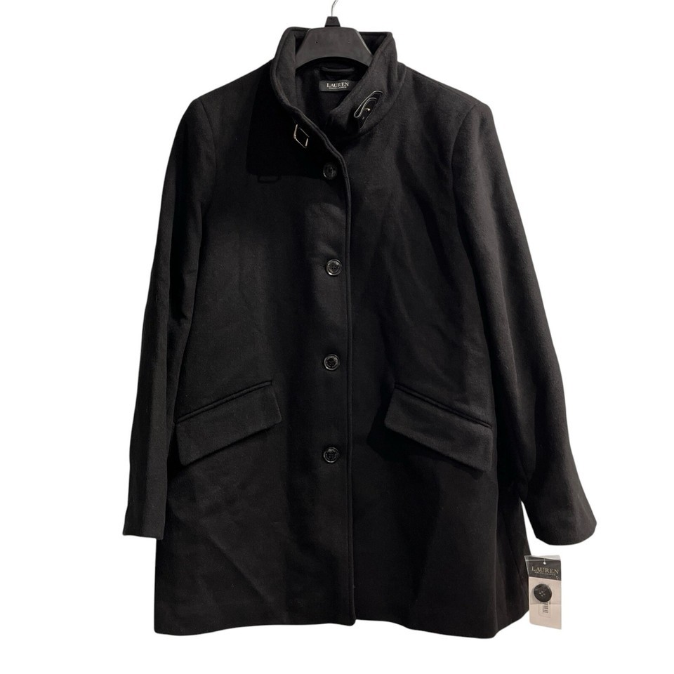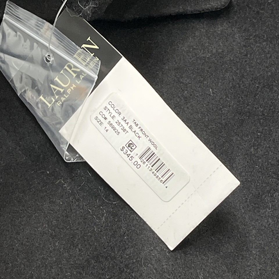 Lauren Ralph Lauren Coat Womens 14 Black Wool Tab Front Old Money Preppy Capsule