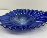 Lavorazione Arte Murano Italy Cobalt Blue Encased Art Glass Ruffle Bowl