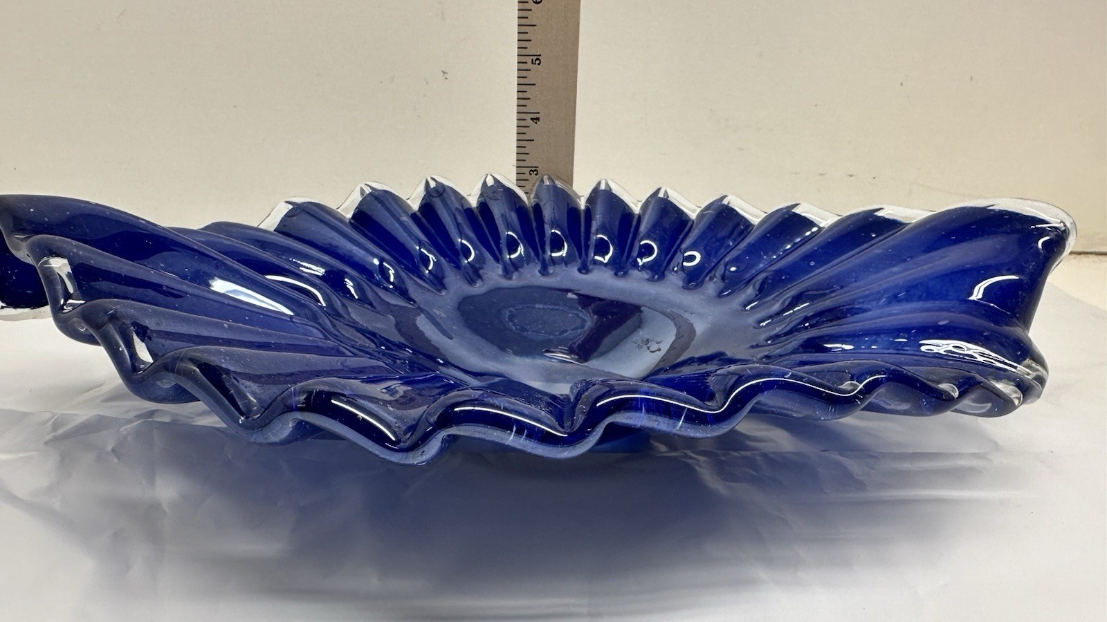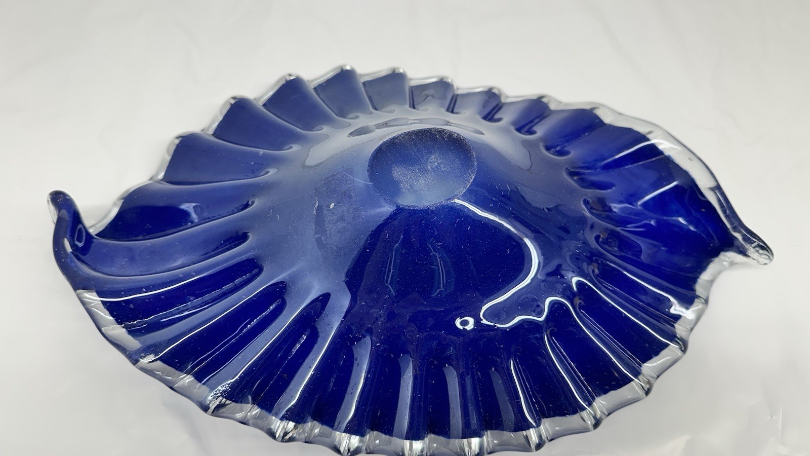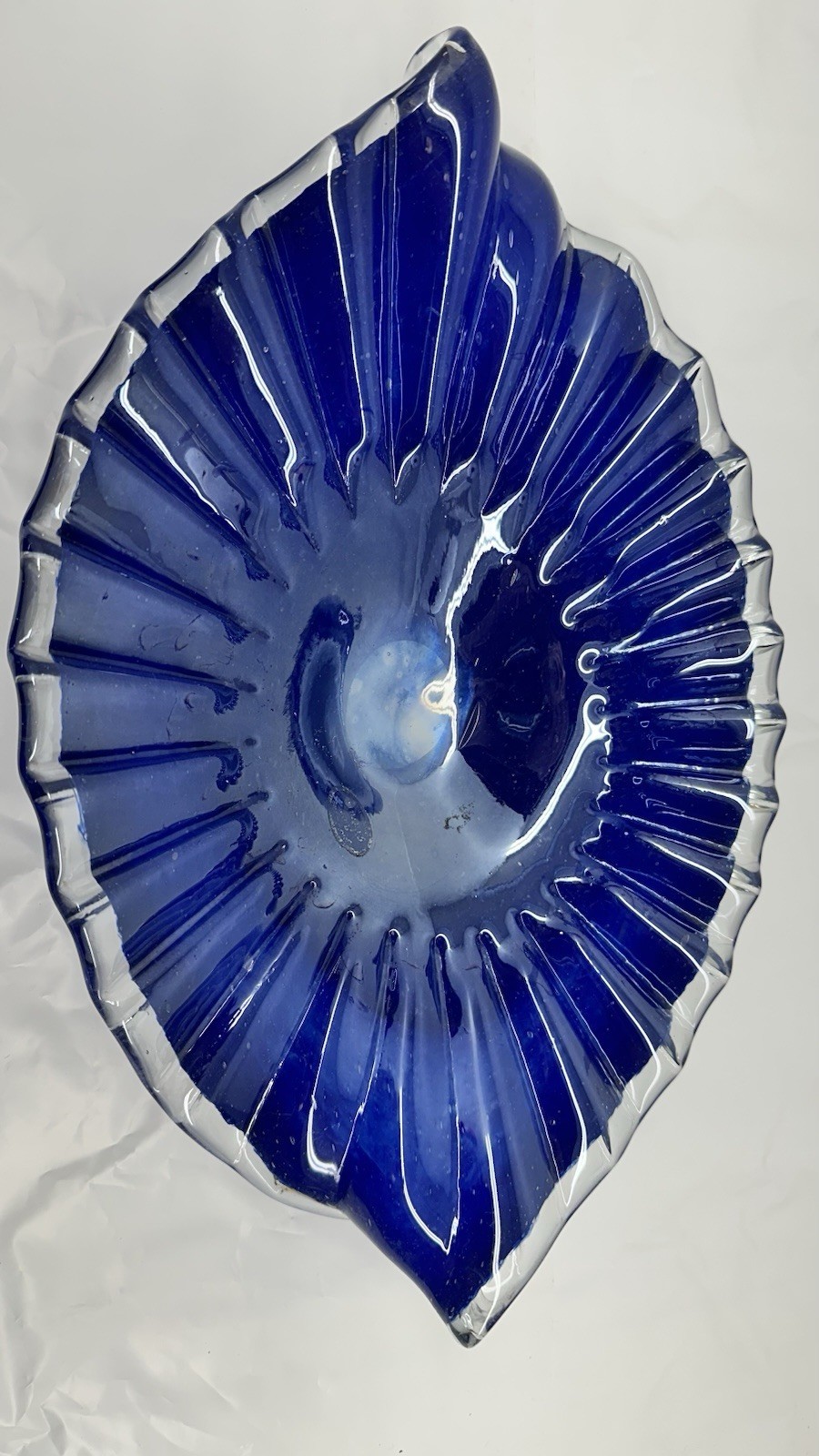 - Lavorazione Arte Murano Italy Cobalt Blue Encased Art Glass Ruffle Bowl