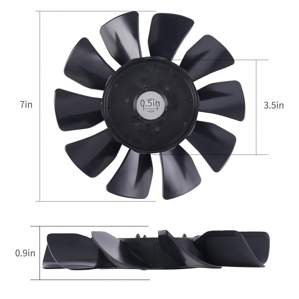 7 inch fan with 10 blades and insert. Transaxle Fan 53822 584282001 Attaches On The Top Of The Transaxle For Cooling.