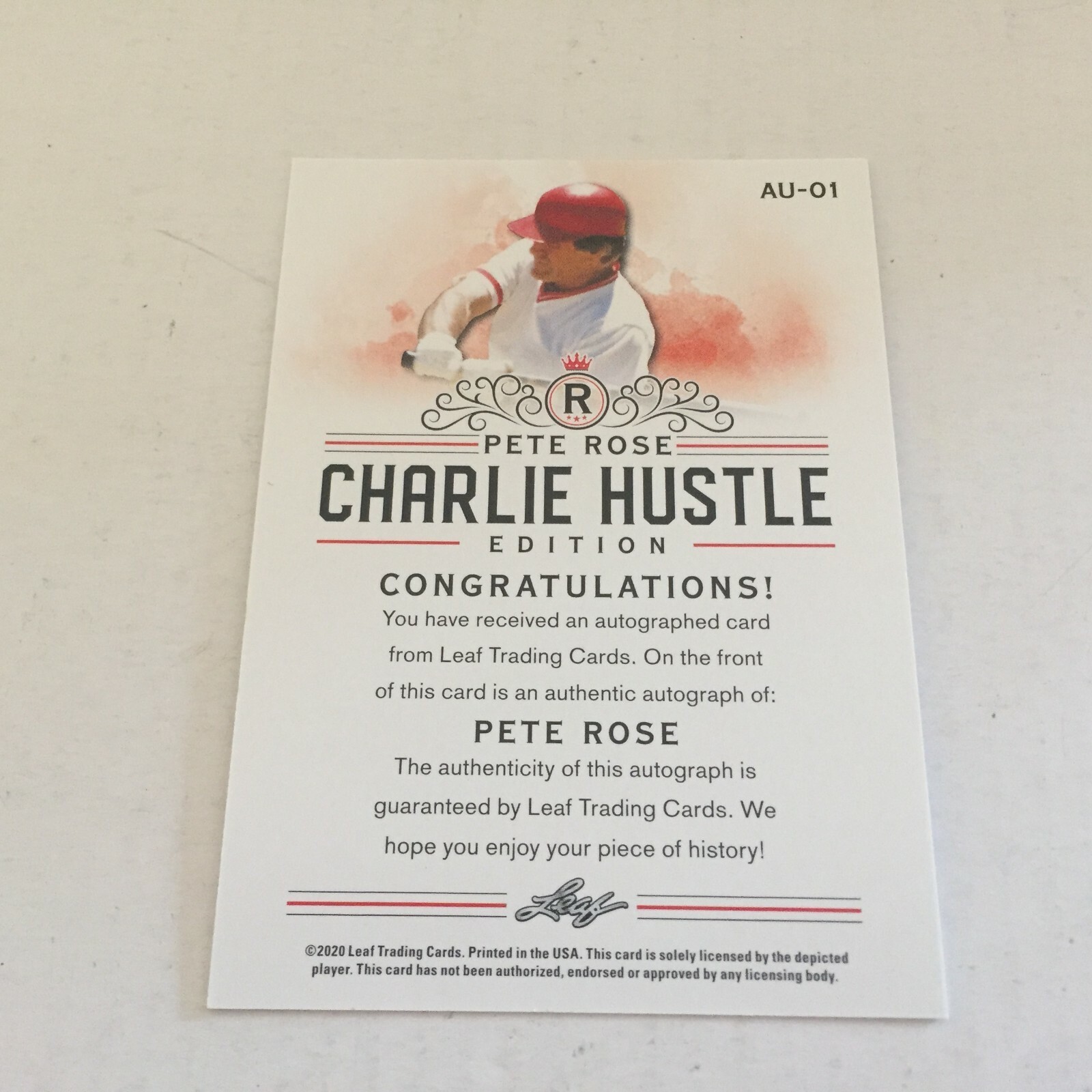 - Leaf MLB Charlie Hustle Edition Pete Rose Autographed Baseball Card