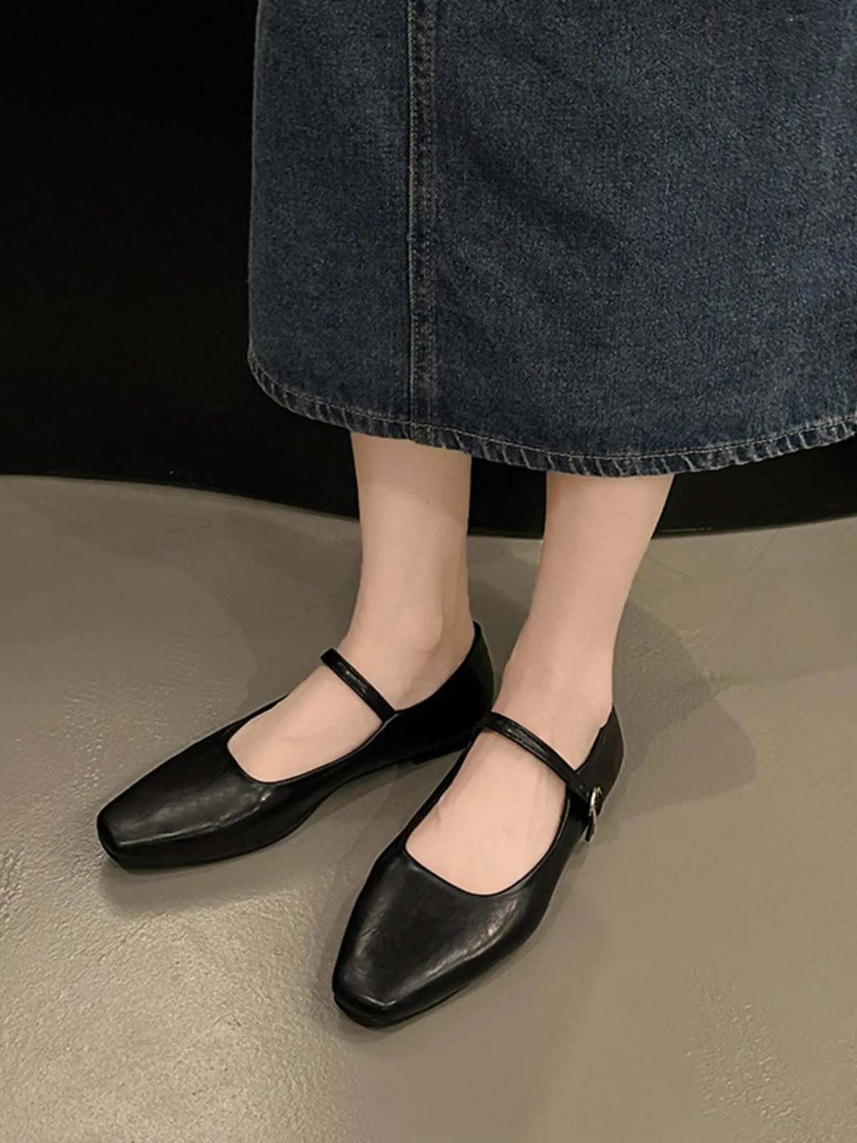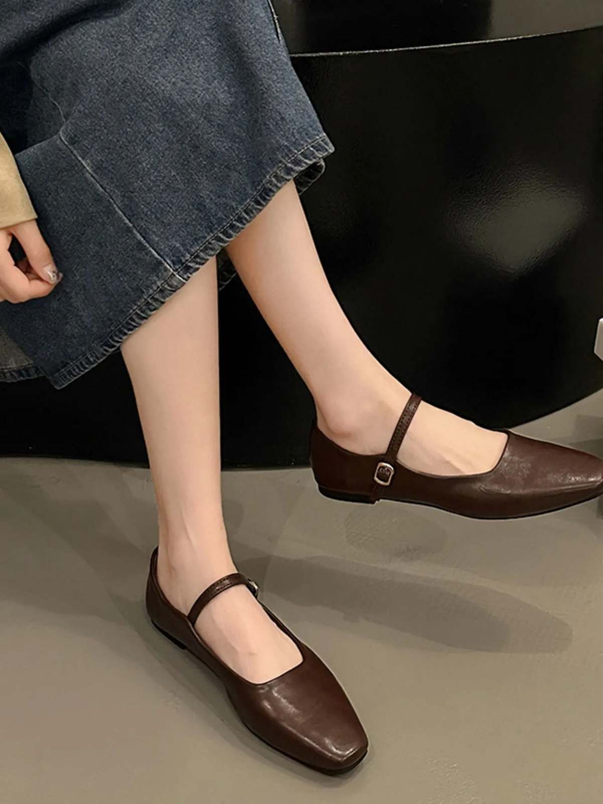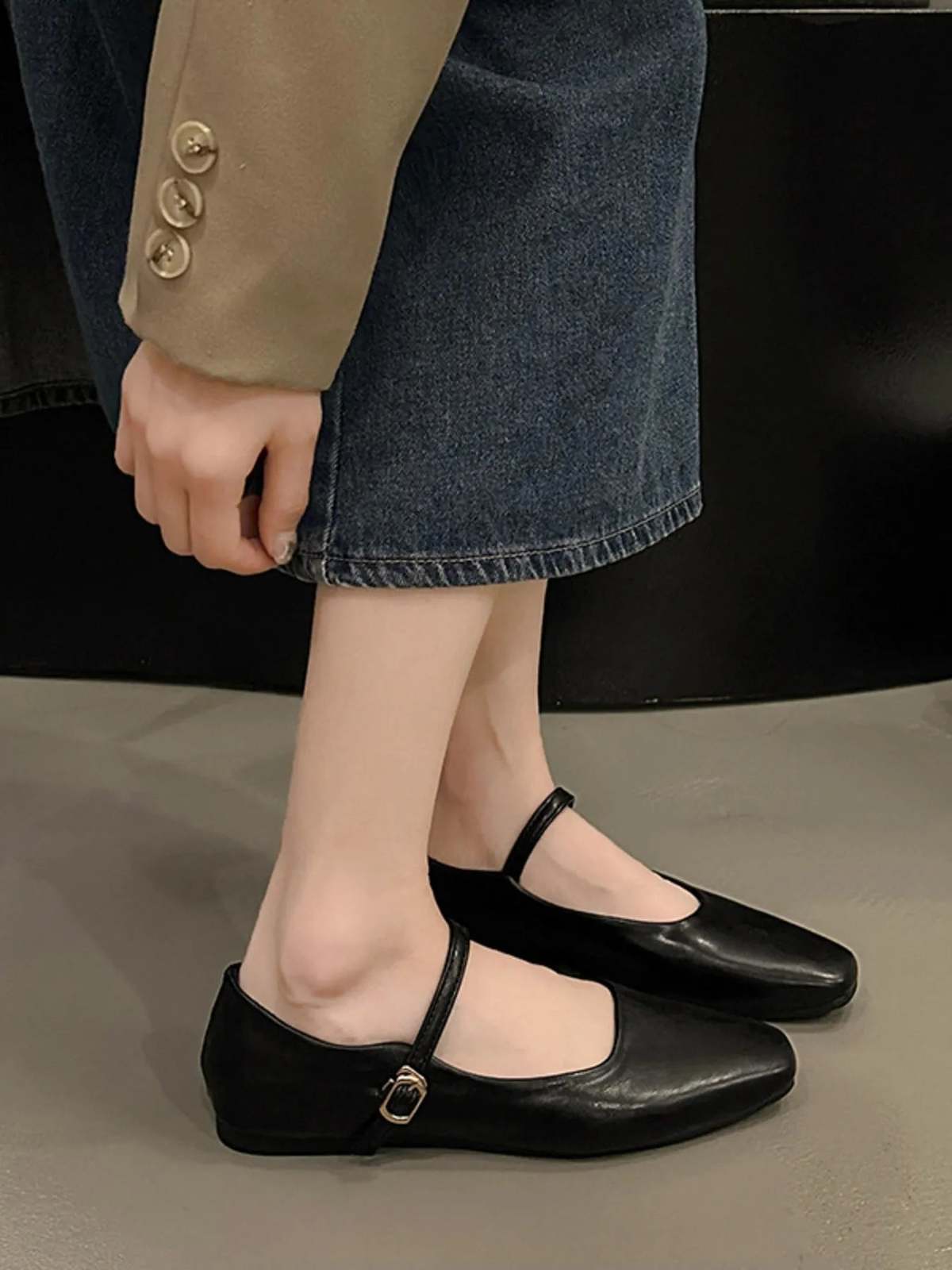 - Leather Buckle Mary Jane Loafers